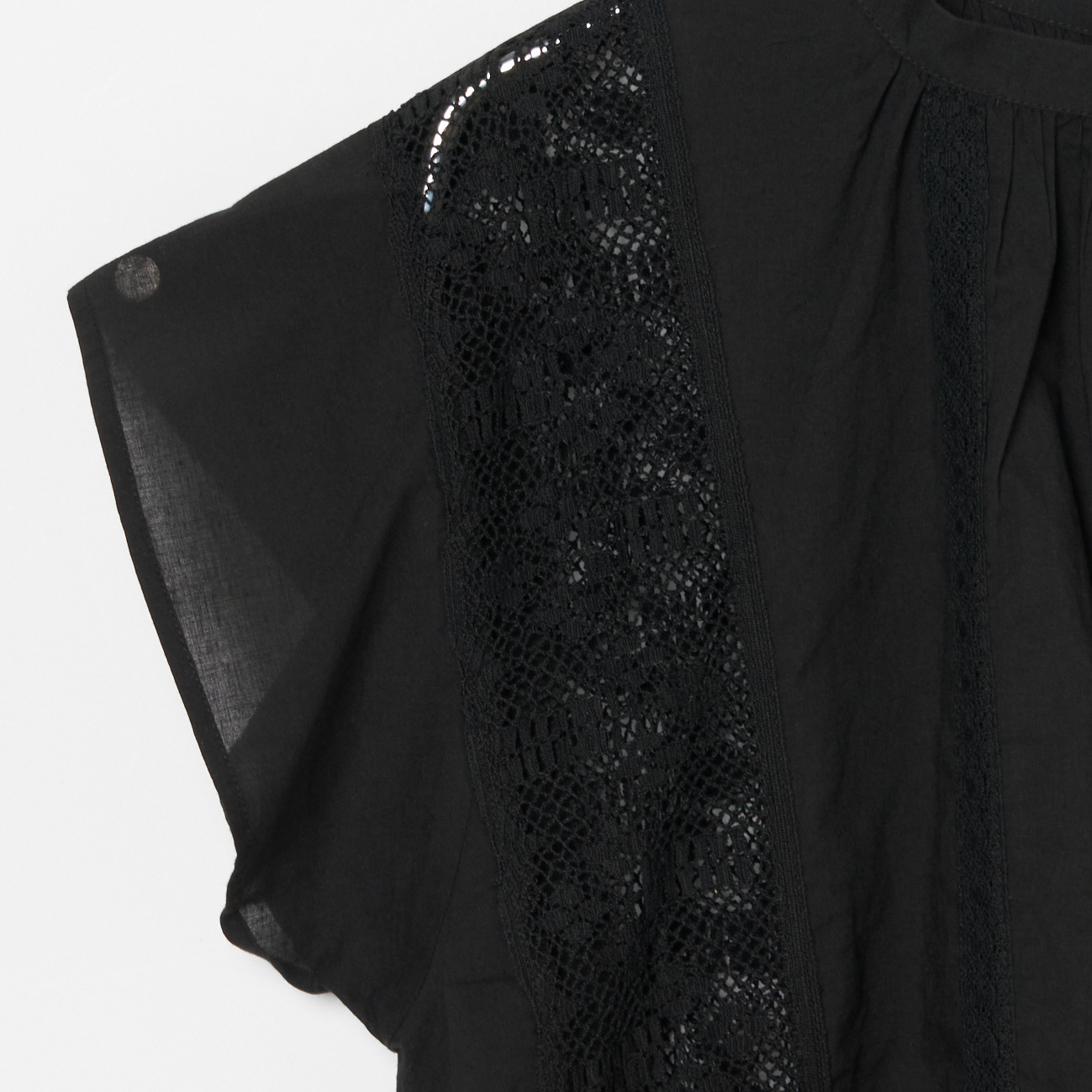 インド綿に繊細なマニーレースをたっぷり使用したフレンチスリーブブラウスです。