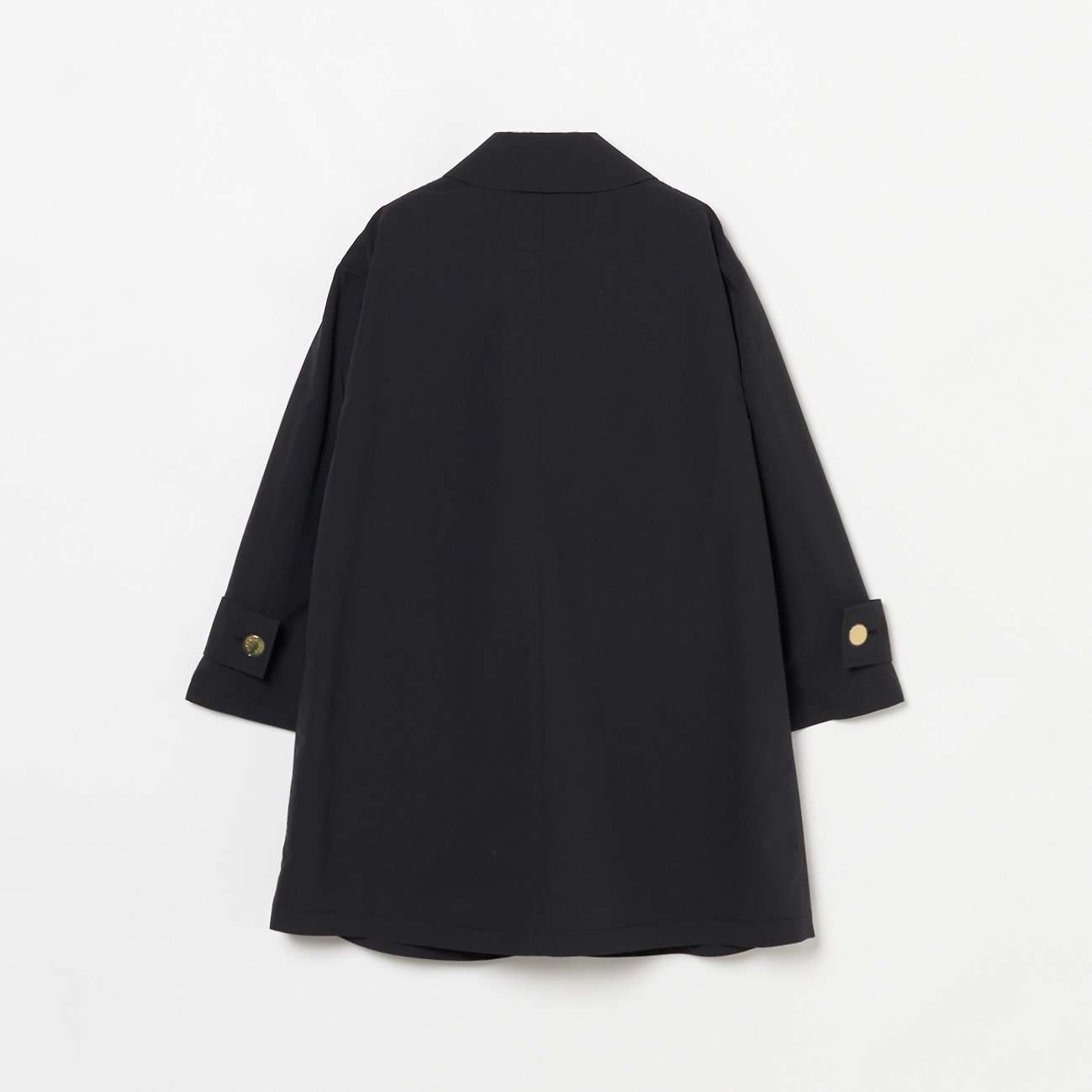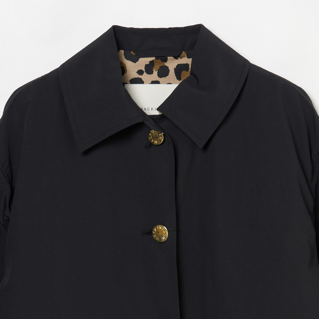 HUMBIEの特徴であるAラインシルエットはそのままに、女性らしいコンパクトなシルエットになった一着。モダンなデザインに襟裏・裏地に配されたレオパードプリントと美しいゴールドボタンが映える定番コートです。