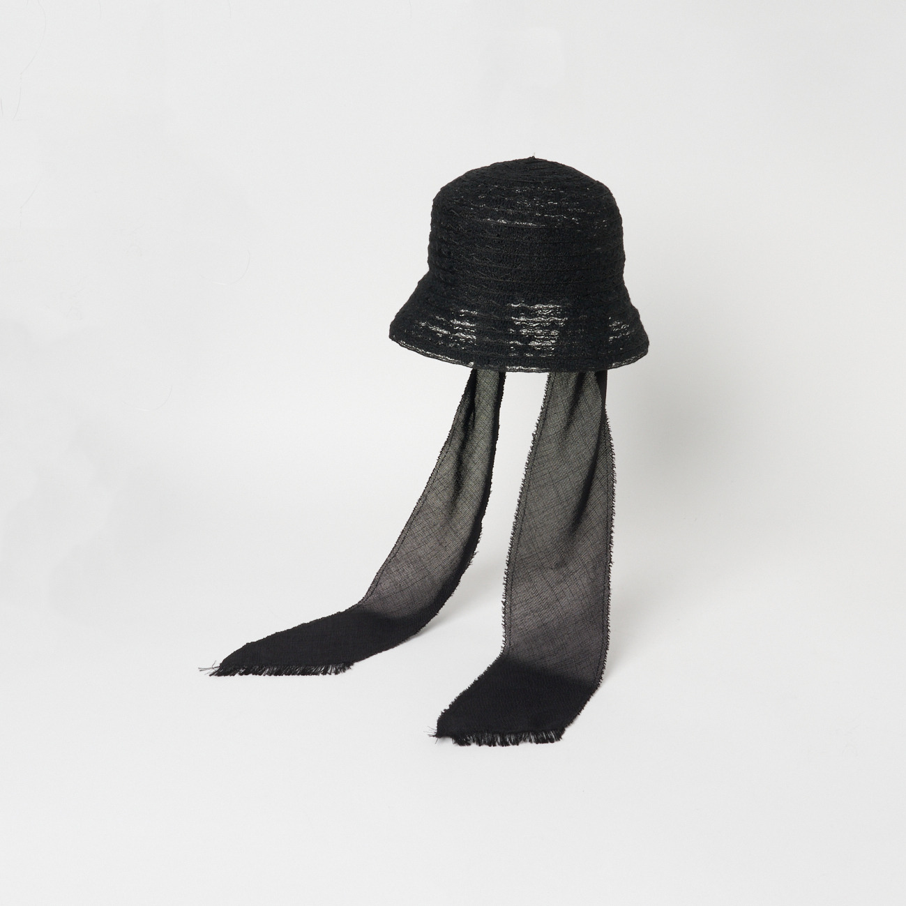 取り外し可能なスカーフで自在にアレンジが楽しめる。スカーフは髪に結んだり後ろで結んだり、首に巻いても素敵。スカーフなしでカジュアルにかぶることも可能。