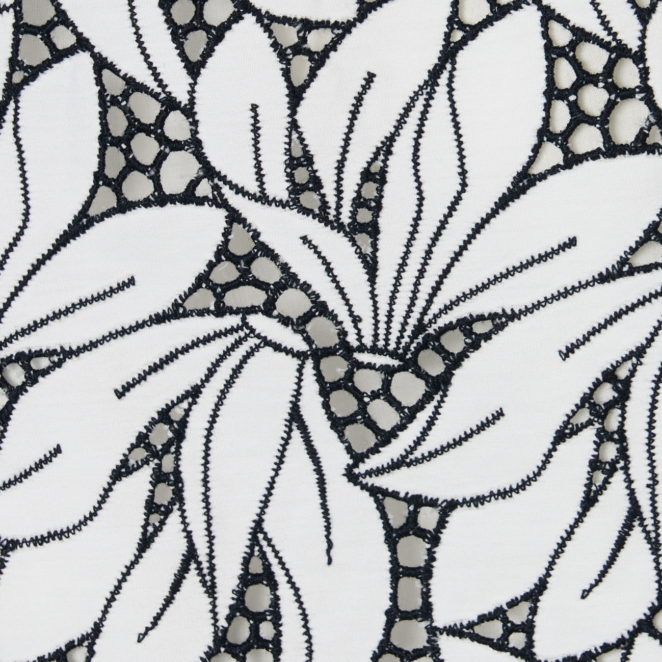 シクラメンの花をモチーフにした大胆な柄を繊細なエンブロイダリーレースで表現。ゆったりとしたワイドシルエットで上品さとリラックス感を両立。