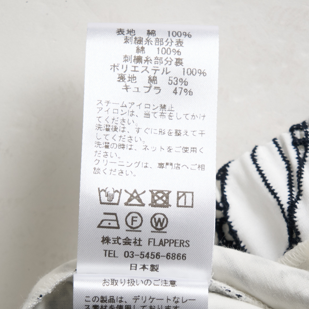 素材 : 表地:綿100%,部分表:綿100%,部分裏:ポリエステル100%,裏地:綿53%,キュプラ47%