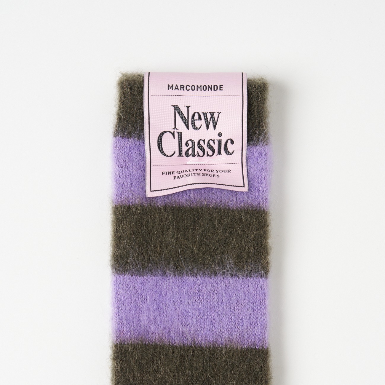 人気のモヘアのソックスに」WANDERUNG(MARCOMONDEのWEARライン)のニットと合わせたボーダーが登場。コーディネートのアクセントにおすすめです。