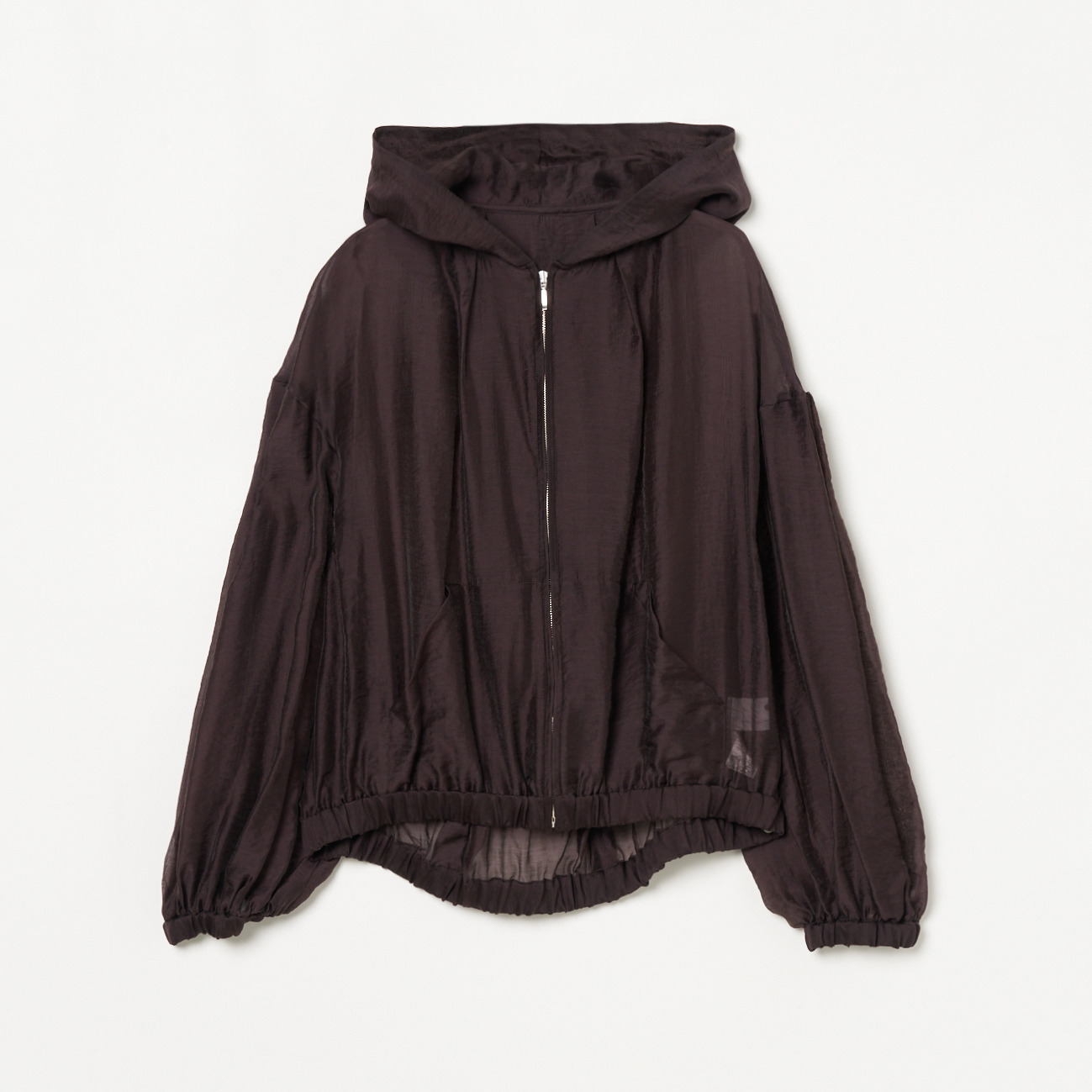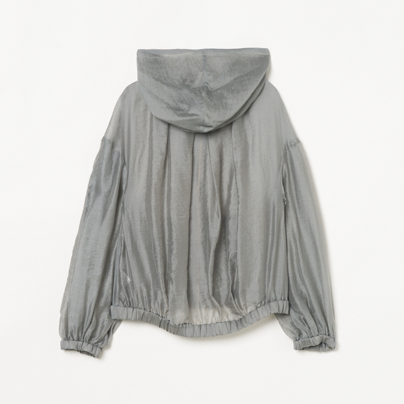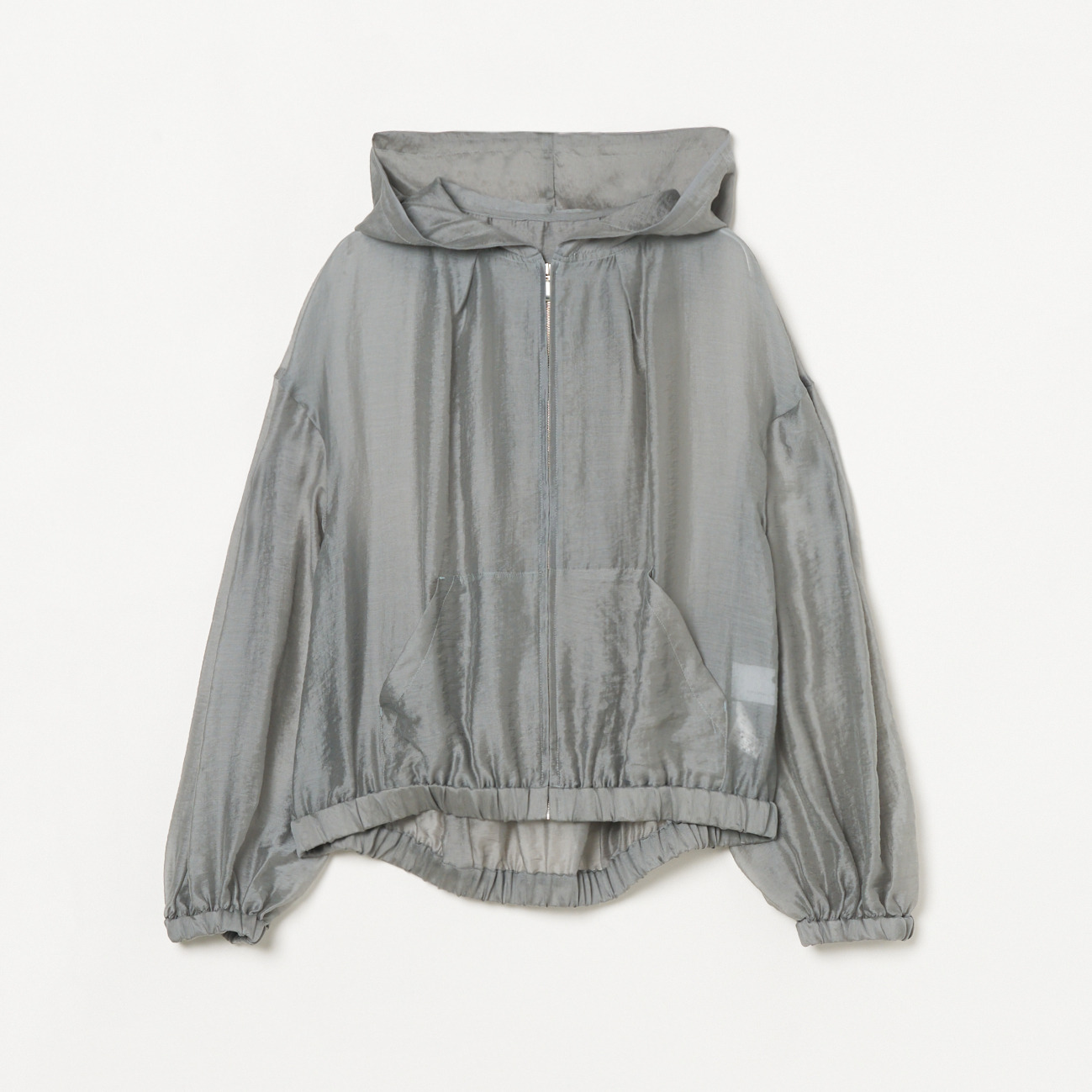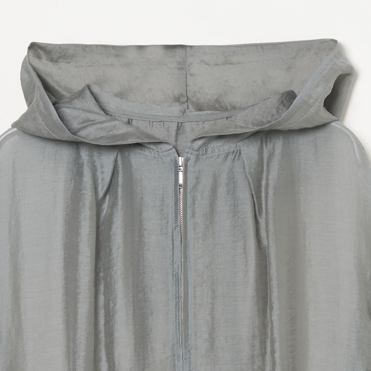 シアー感や控えめの光沢が今年らしい、シャツ素材のボリュームジップアップフーディー。