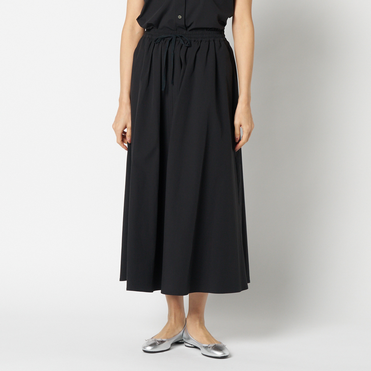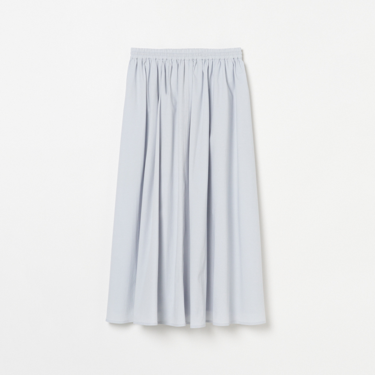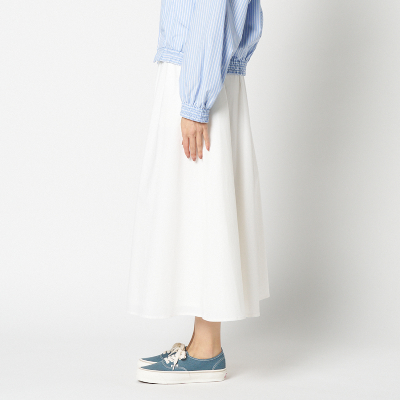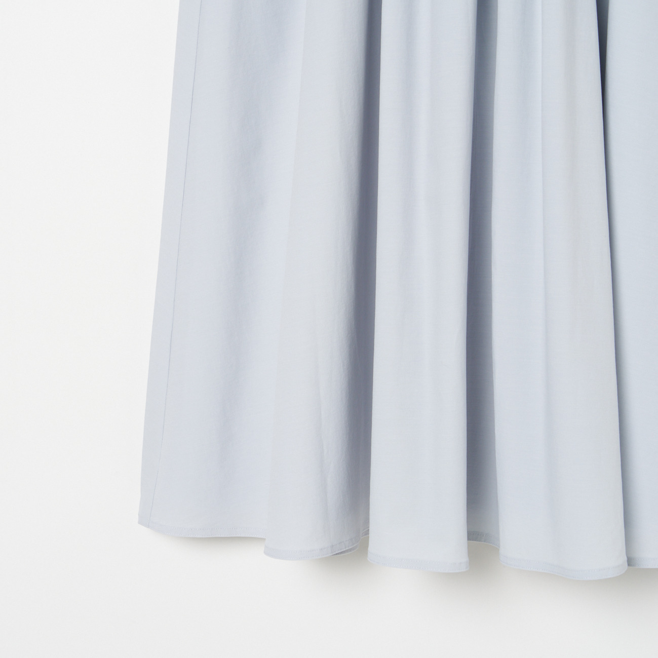 程よいハリがありつつ、ナチュラルな質感も備わった一枚。生地をたっぷり使った存在感のあるシルエットながら、ウエスト周りのギャザーを控えめにすることで、腰まわりが膨らみすぎないシルエットに仕上げました。