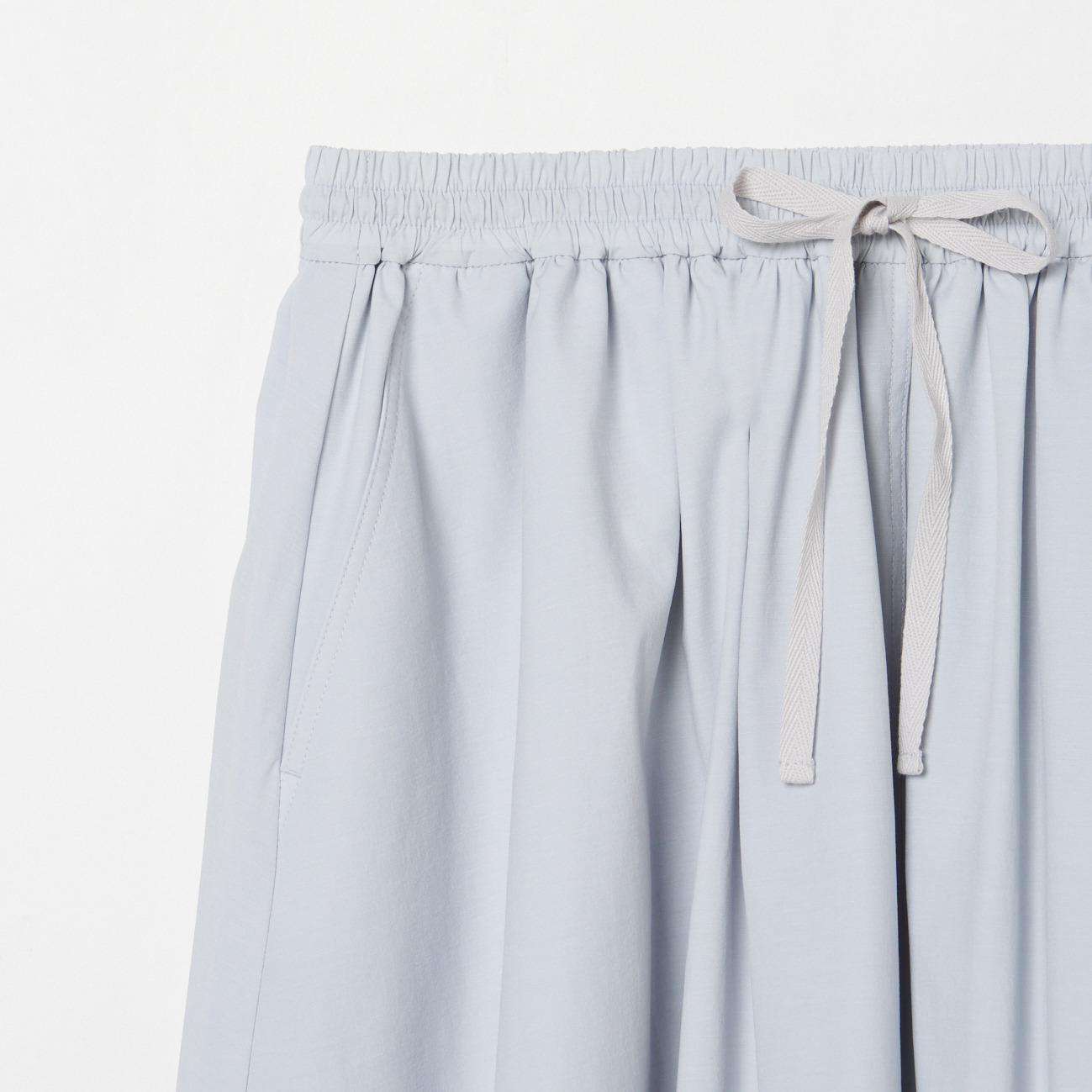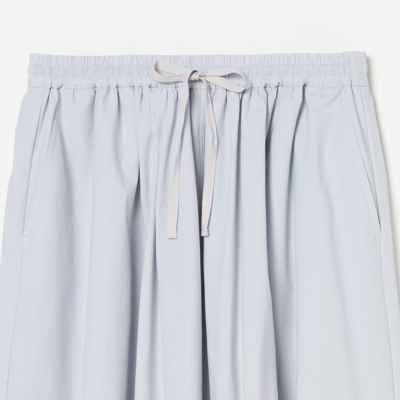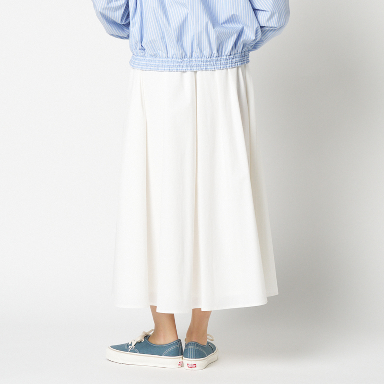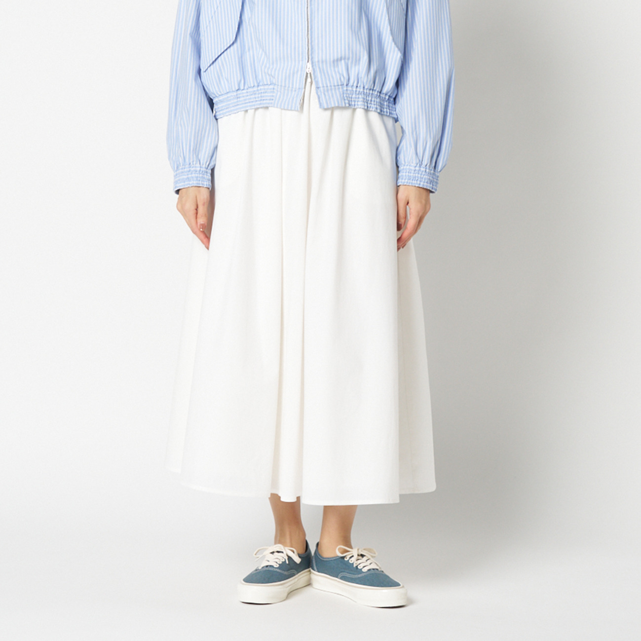 程よいハリがありつつ、ナチュラルな質感も備わった一枚。生地をたっぷり使った存在感のあるシルエットながら、ウエスト周りのギャザーを控えめにすることで、腰まわりが膨らみすぎないシルエットに仕上げました。