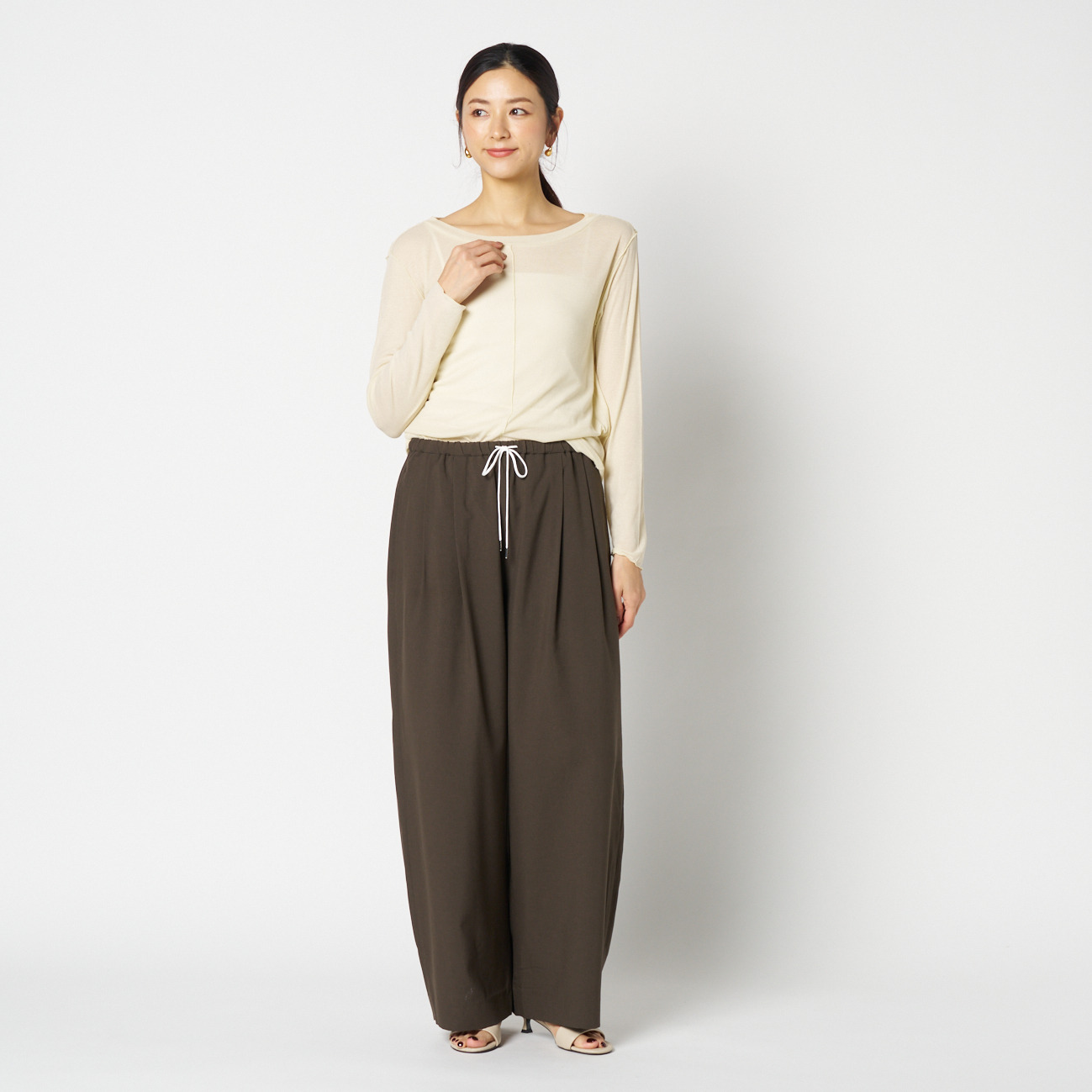 2タックでゆったりとしたサイズ感に加え、ウエストはリラックス感のあるドローストリング仕様です。