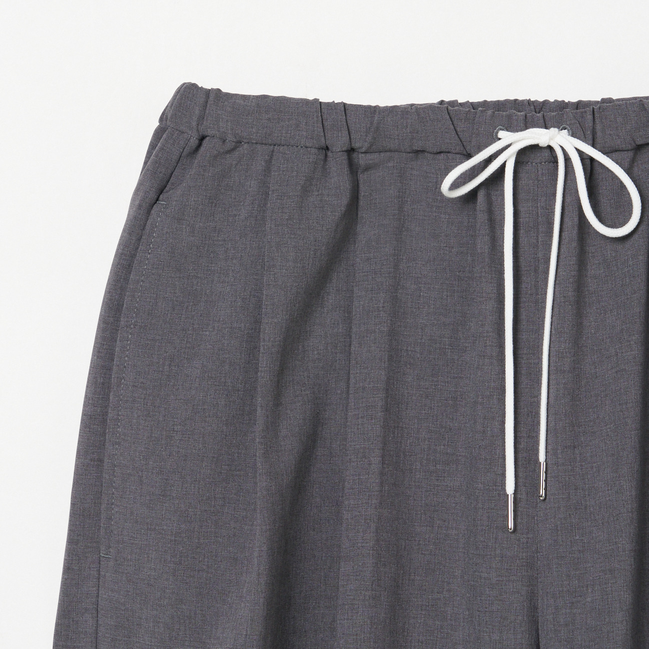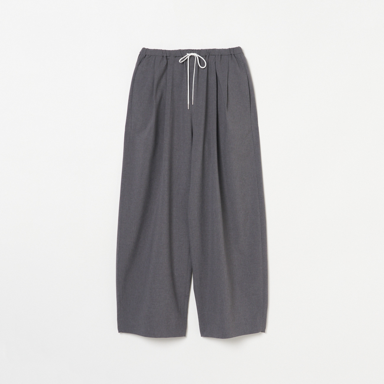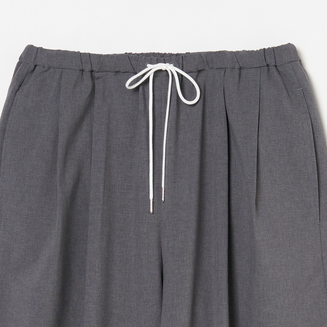 2タックでゆったりとしたバレルシルエットです。ウェストはドローストリングで外に見える白いウエスト紐がトップスをインした際はデザインポイントに。