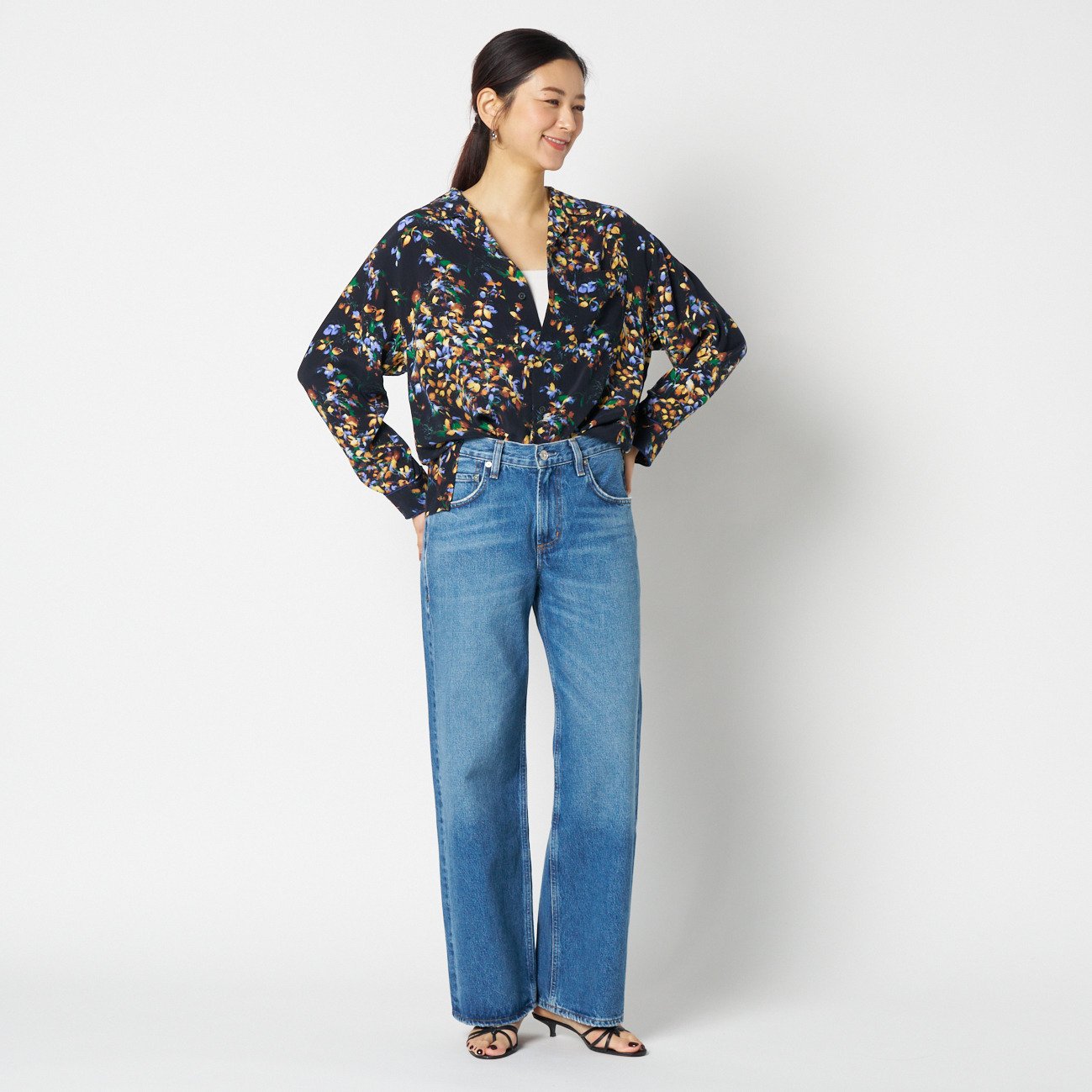 使用したファインビスコースは、まるでシルクのように滑らかで、うっとりするような肌触りが特徴です。開襟カラーが顔周りに抜け感を作り、袖口のパイピングが全体をキリッと引き締めるアクセントになっています。 上質な素材を、あえてリラックスしたシルエットで楽しむ1着です。