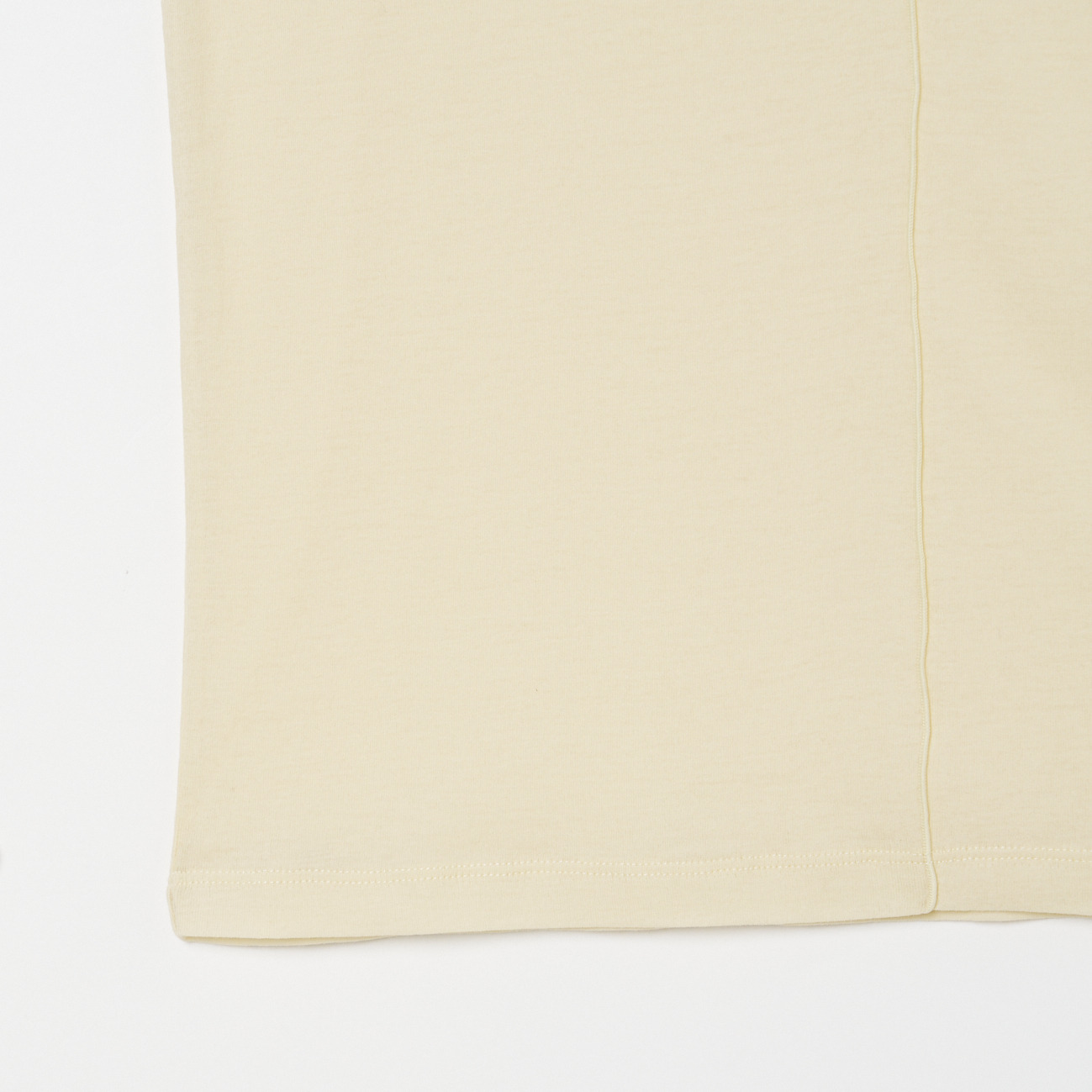 ゆったりとしたワイドシルエットながら、繊細な素材感によって上品な落ち感が生まれ、すっきりとした印象に。センターの切り替えデザインがさりげないアクセントになり、一枚でもサマになります。