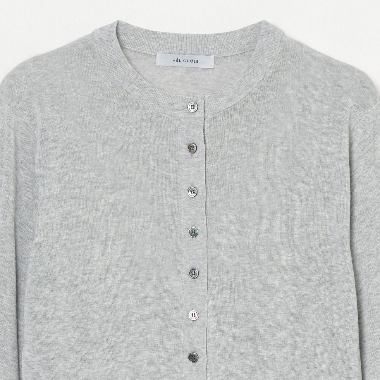 首元が詰まったミニマルなクルーネックのデザインは、ボタンを留めてプルオーバーのように着こなすのもおすすめです。袖口や裾のリブがシルエットを引き締め、カジュアルな中にもクリーンで落ち着いた表情をプラスしてくれます。