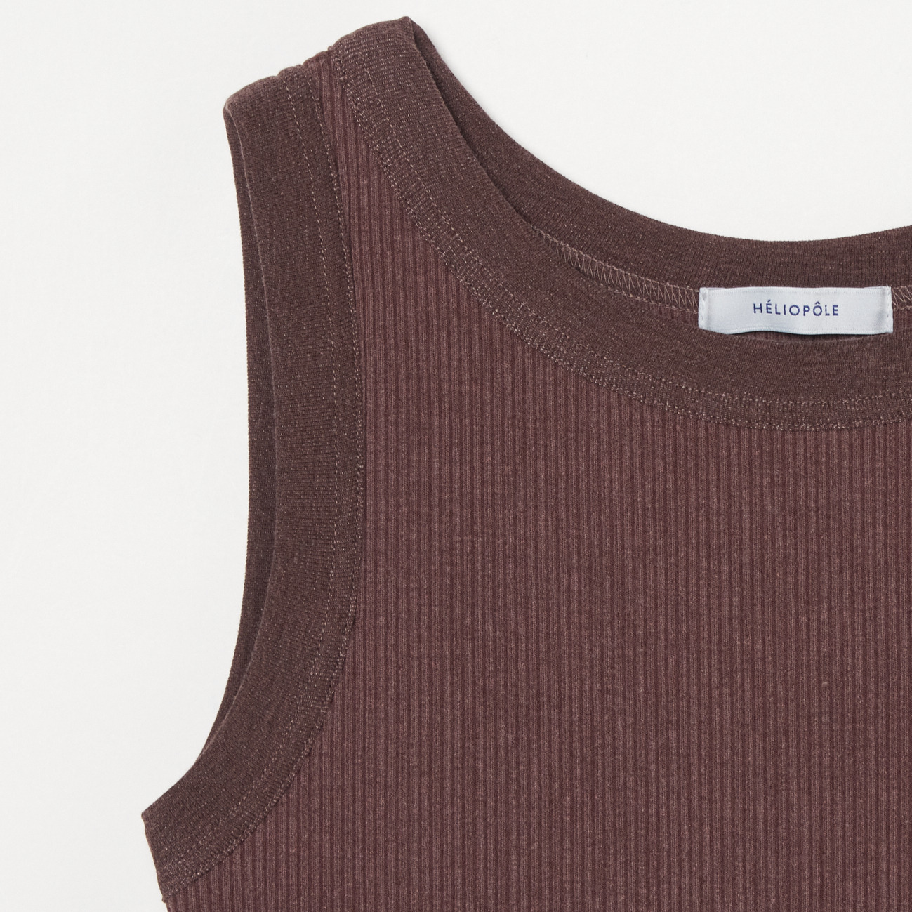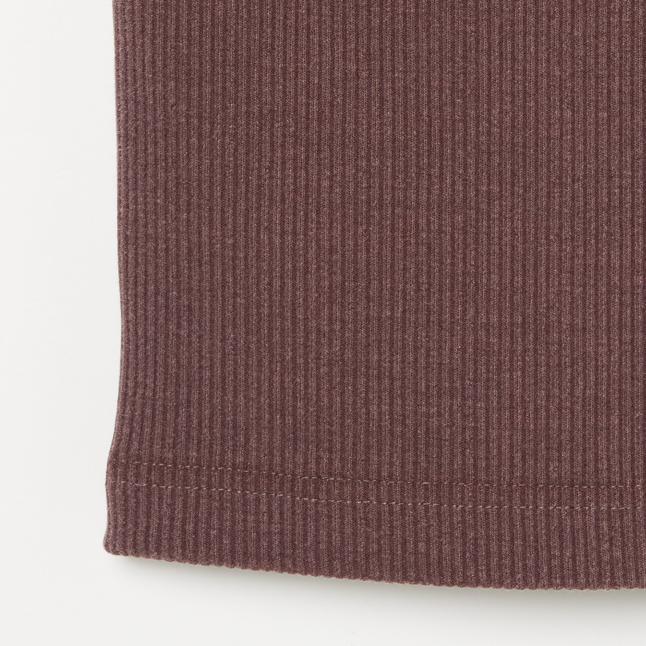体に優しくフィットするリブ編みのコットン素材は、抜群の伸縮性とさらりとした肌触りが特徴です。程よく詰まったネックラインと、肩のラインを美しく見せるシルエット。一枚で着てもサマになるバランスの良さもポイントです。