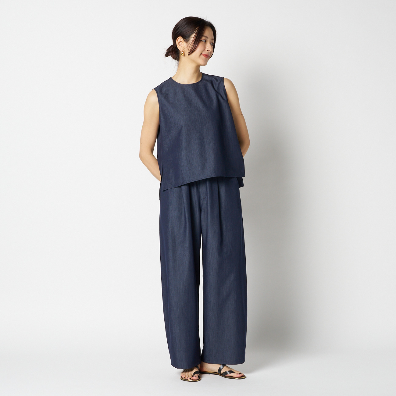 カジュアルな印象のデニムも、きれいめなスタイルに馴染む上品な質感で楽しめます。