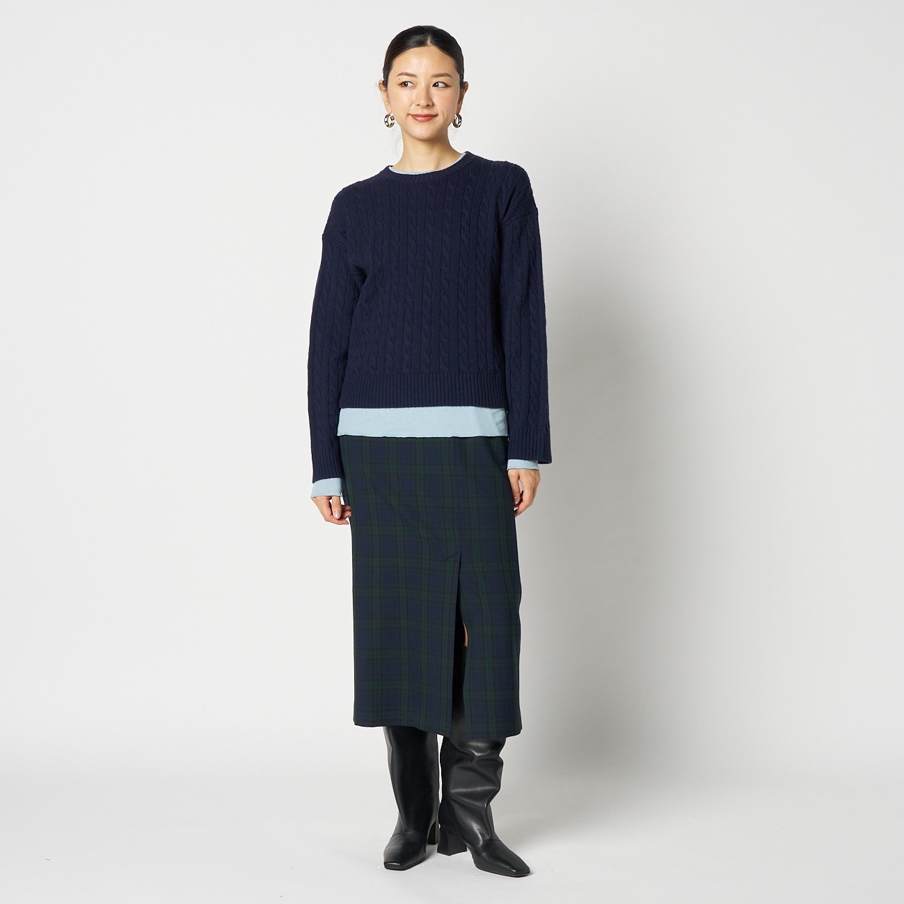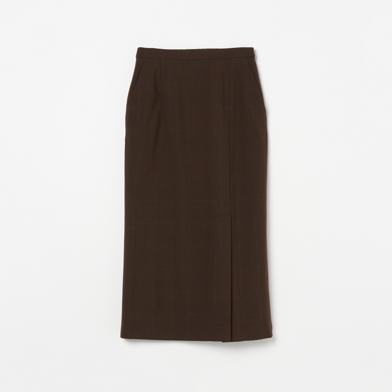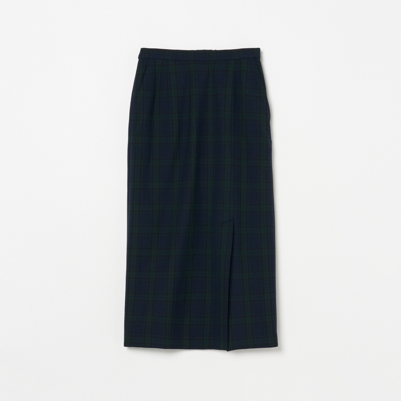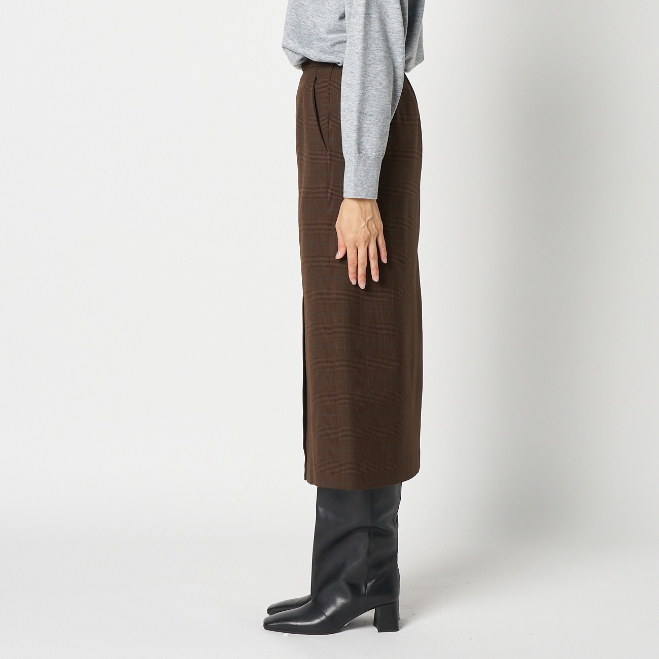 ポリエステルレーヨン素材のチェック柄素材を使用したIラインスカートです。もっちりとした質感で2Wayストレッチの素材のため非常に履き心地が良く、イージーケアなのも魅力です。
