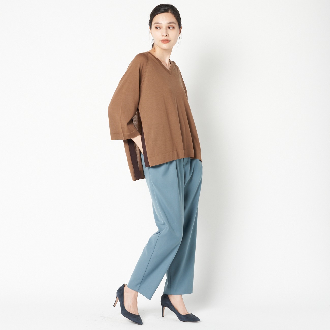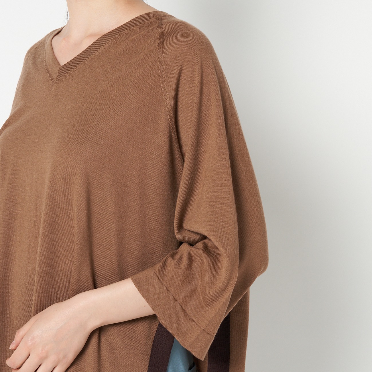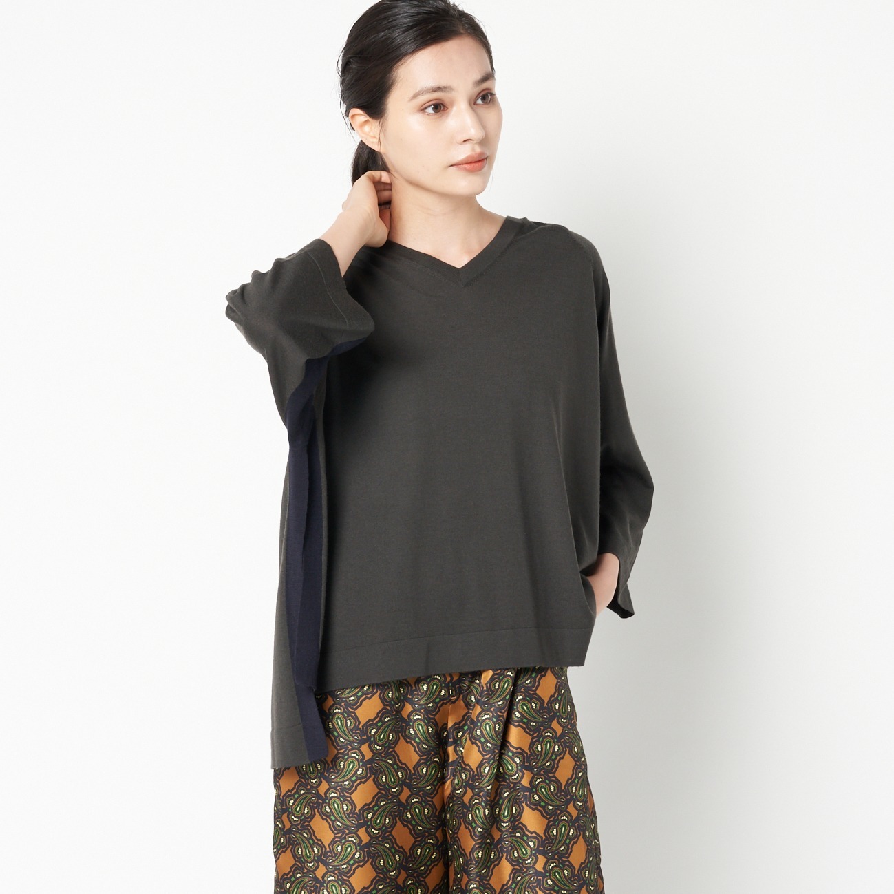 ハイゲージ配色サイドスリットVニットプルオーバー