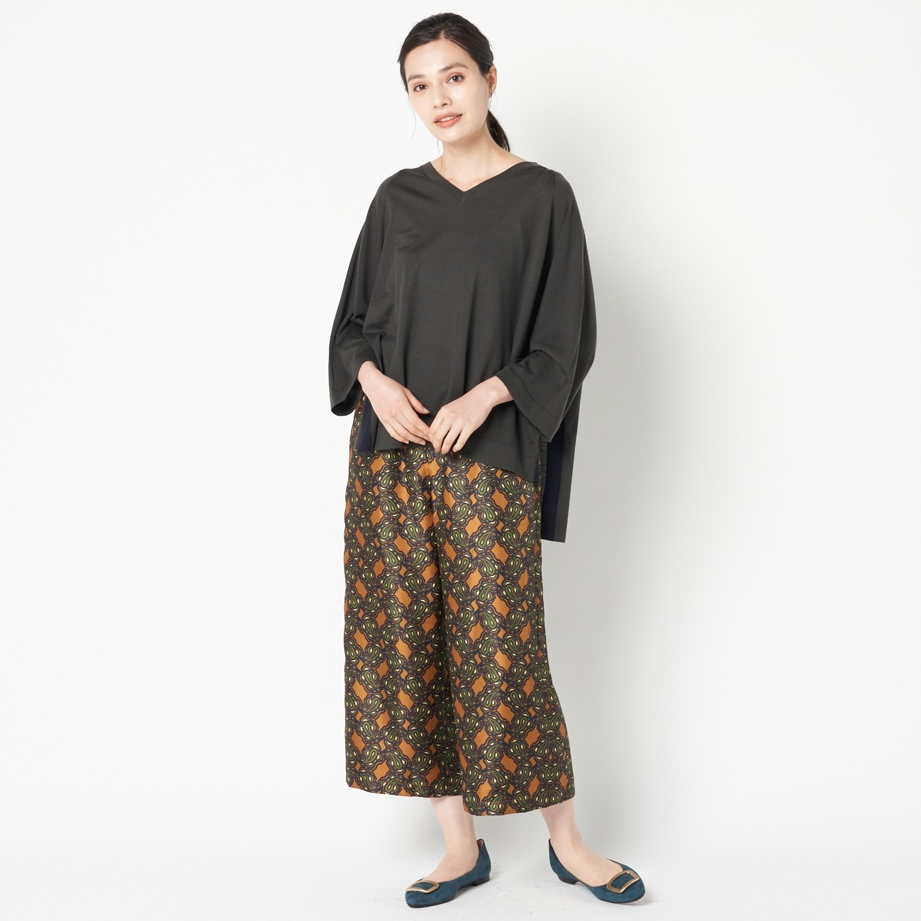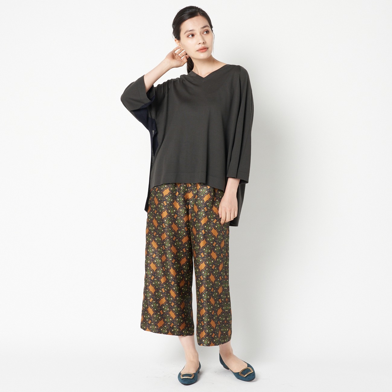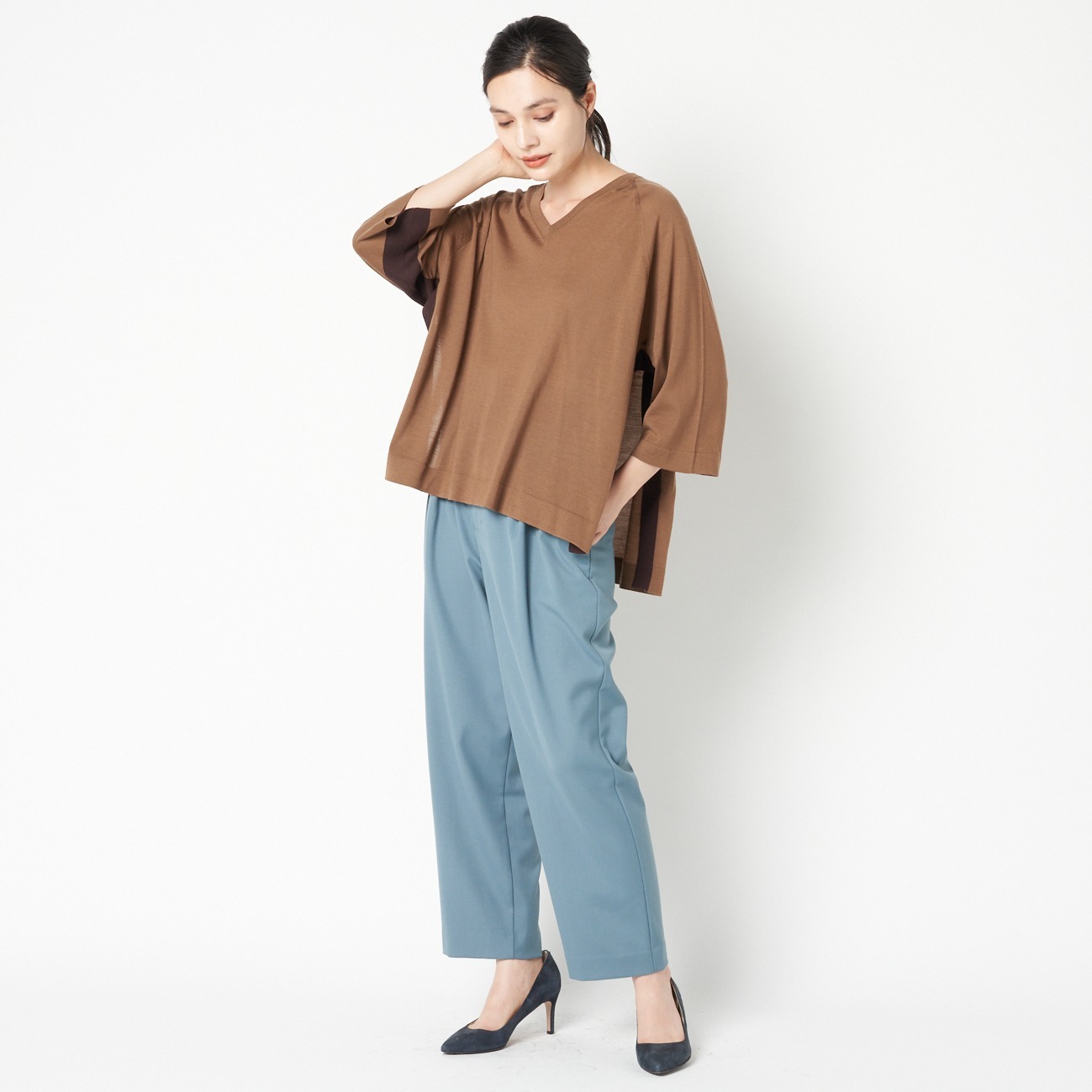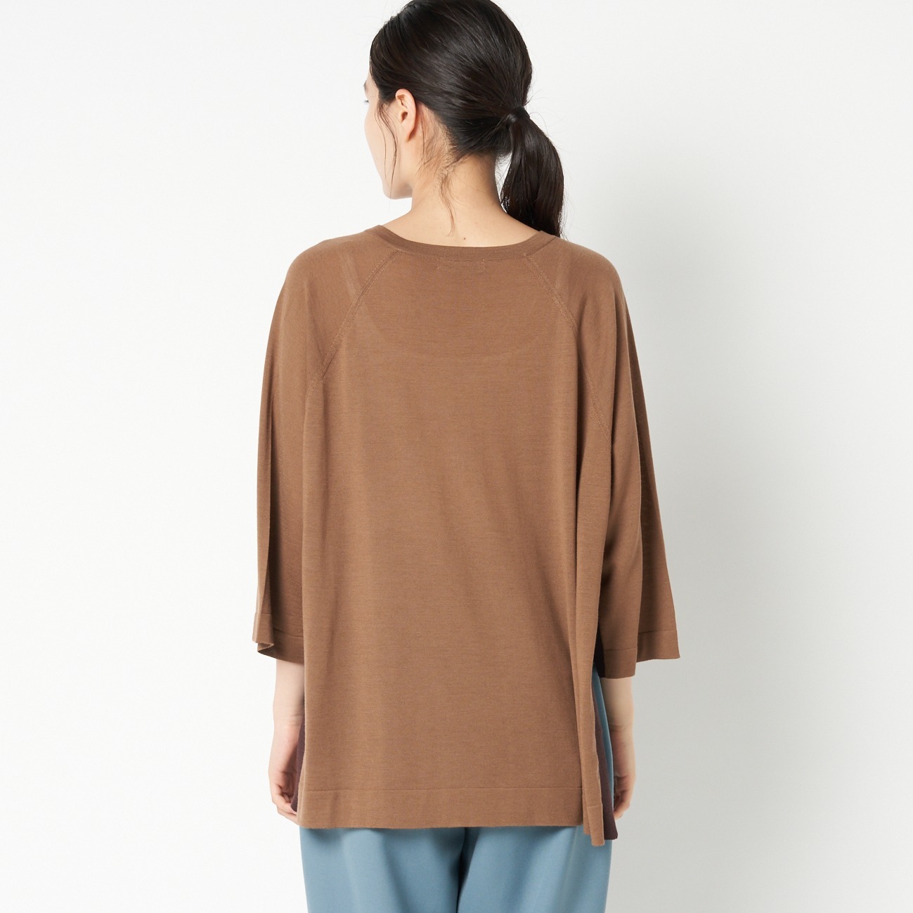 ハイゲージ配色サイドスリットVニットプルオーバー