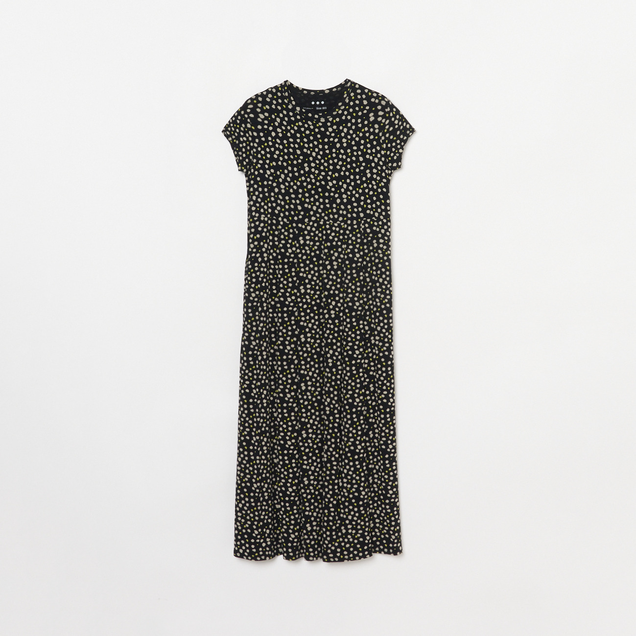 切り替え位置の高めのドレスは締め付け感がなく、ノーストレスな着心地。小さめのショートスリーブも華奢な印象をもたらし鮮度UPに。