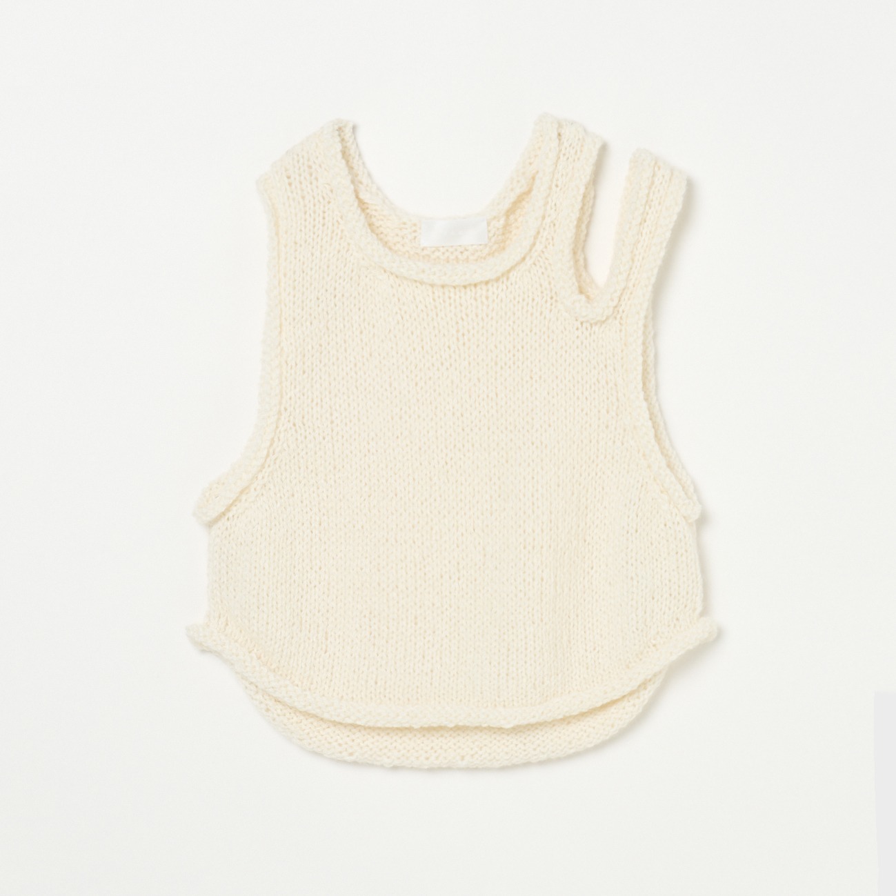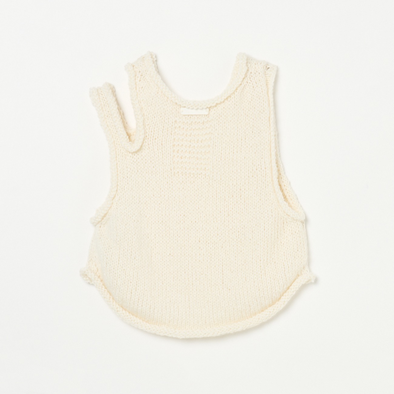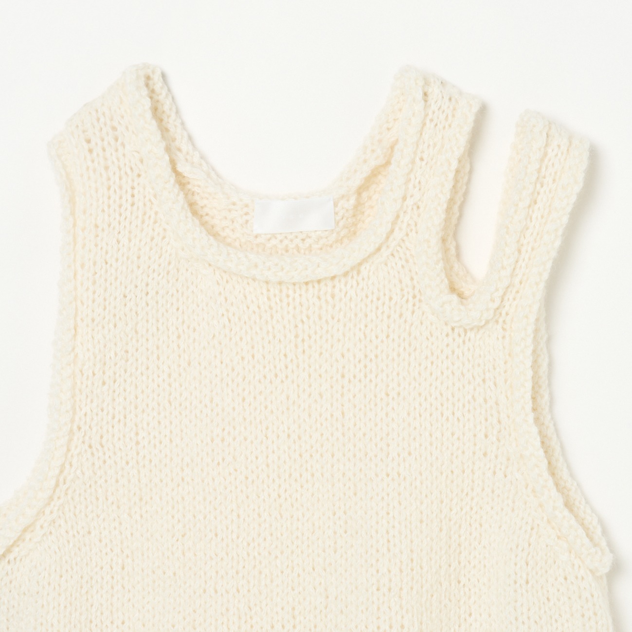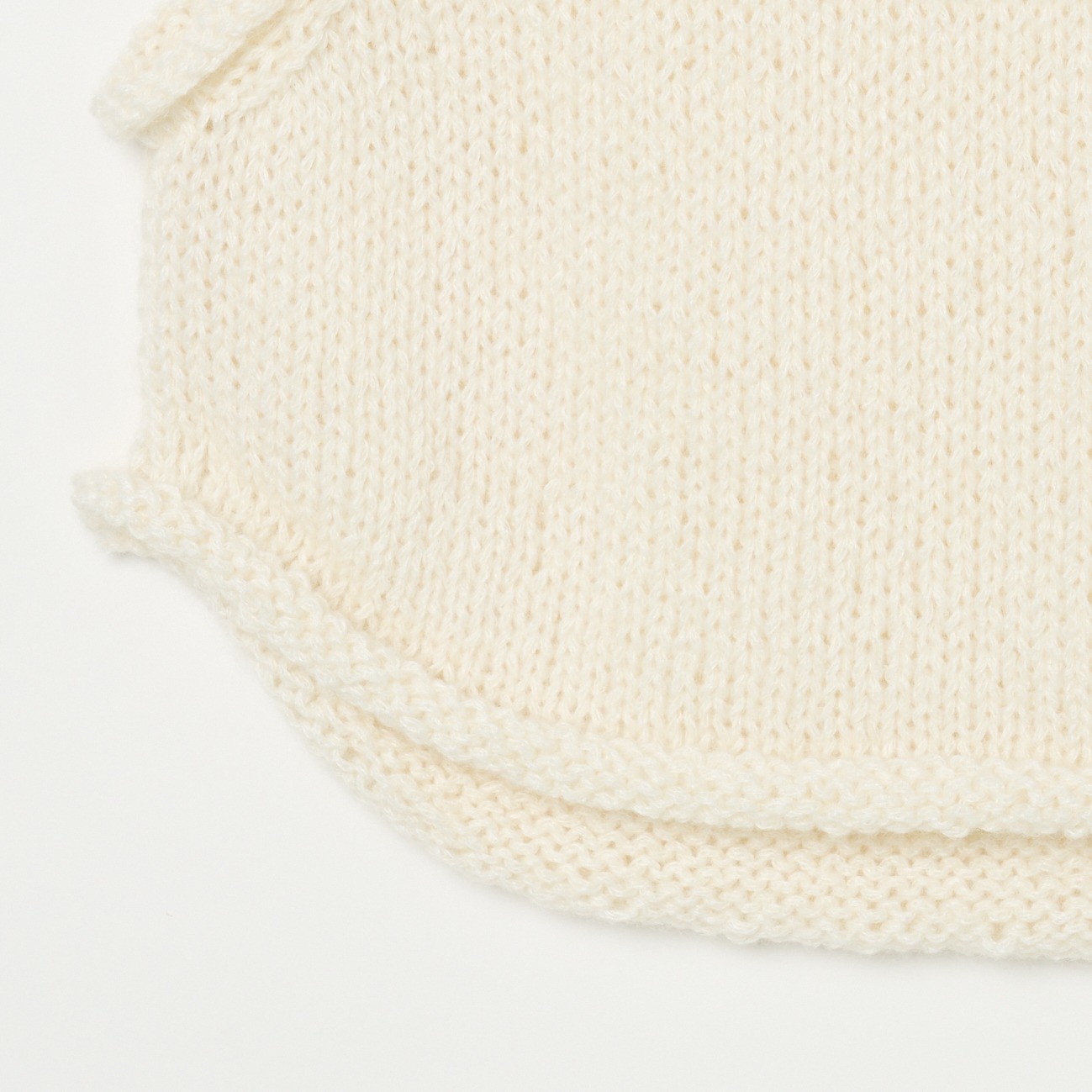 手編み ヘンプモヘア スリットベスト 。厳しい気候風土のなかで生きる羊が身にまとう貴重な繊維 「モヘア」 は、手触りがなめらかで光沢があるのが特徴です。
