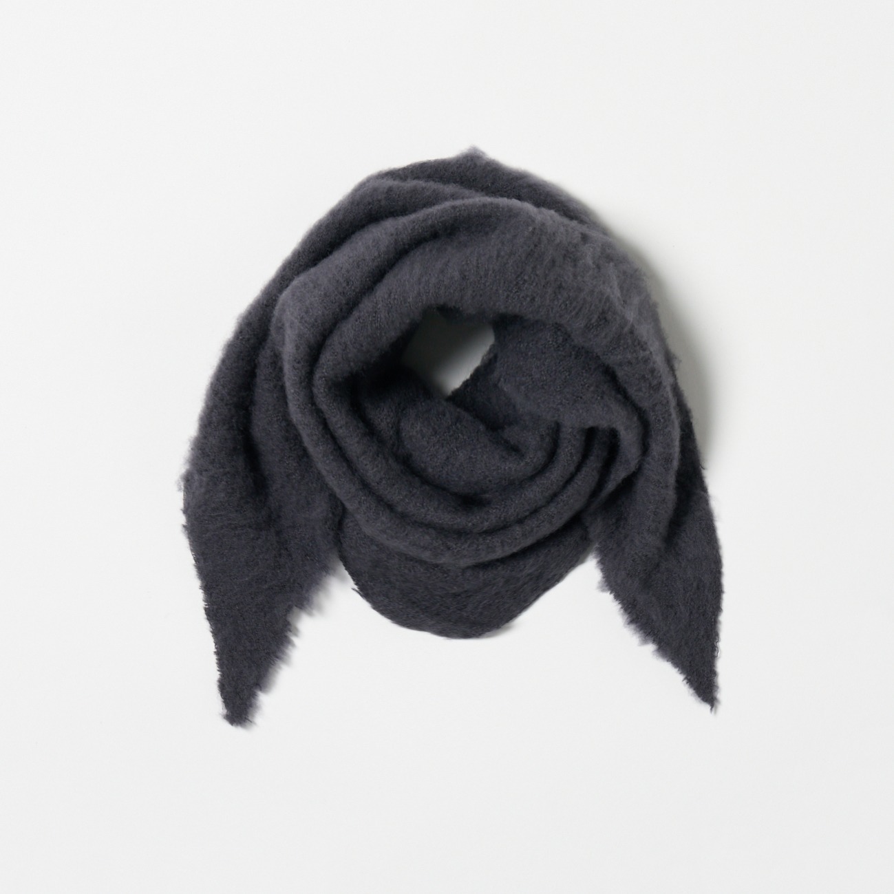 三角形のバンダナスタイルのKat。バージンウールとカシミヤを織り交ぜたソフトな素材が使われており、サイズは小さめながらも十分な保温性があります。