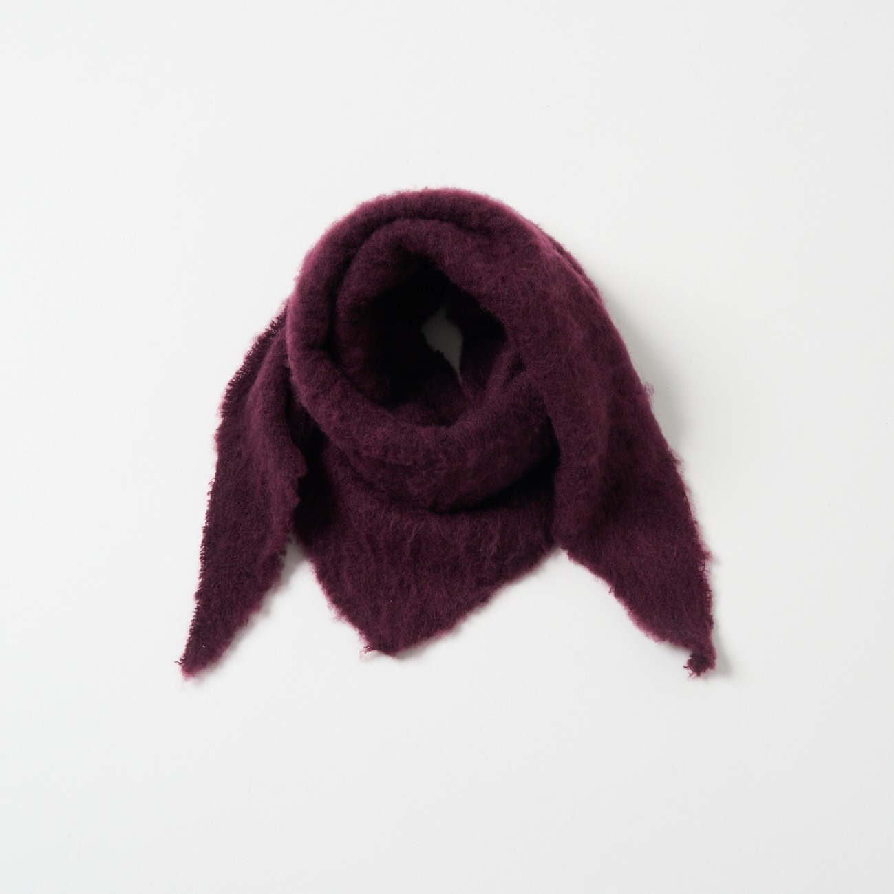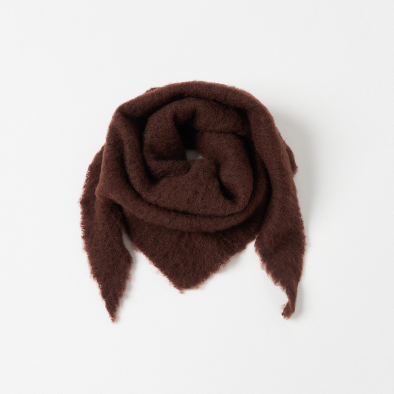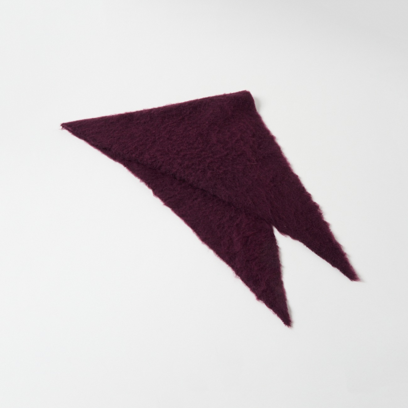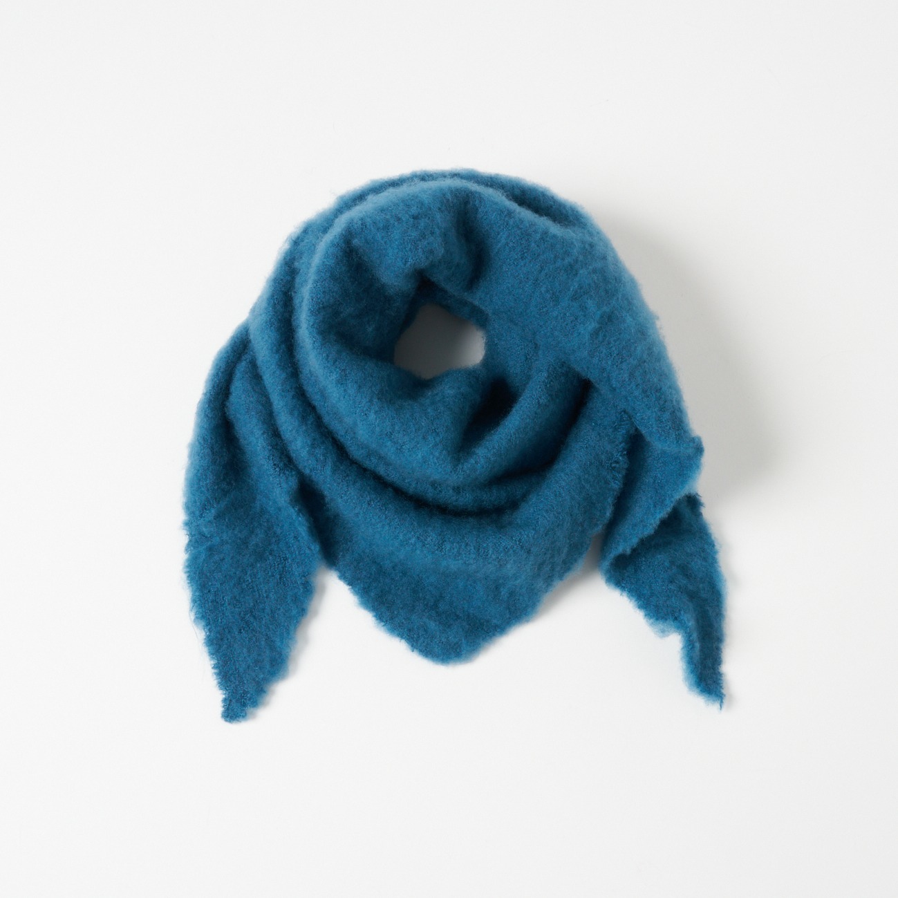 三角形のバンダナスタイルのKat。バージンウールとカシミヤを織り交ぜたソフトな素材が使われており、サイズは小さめながらも十分な保温性があります。