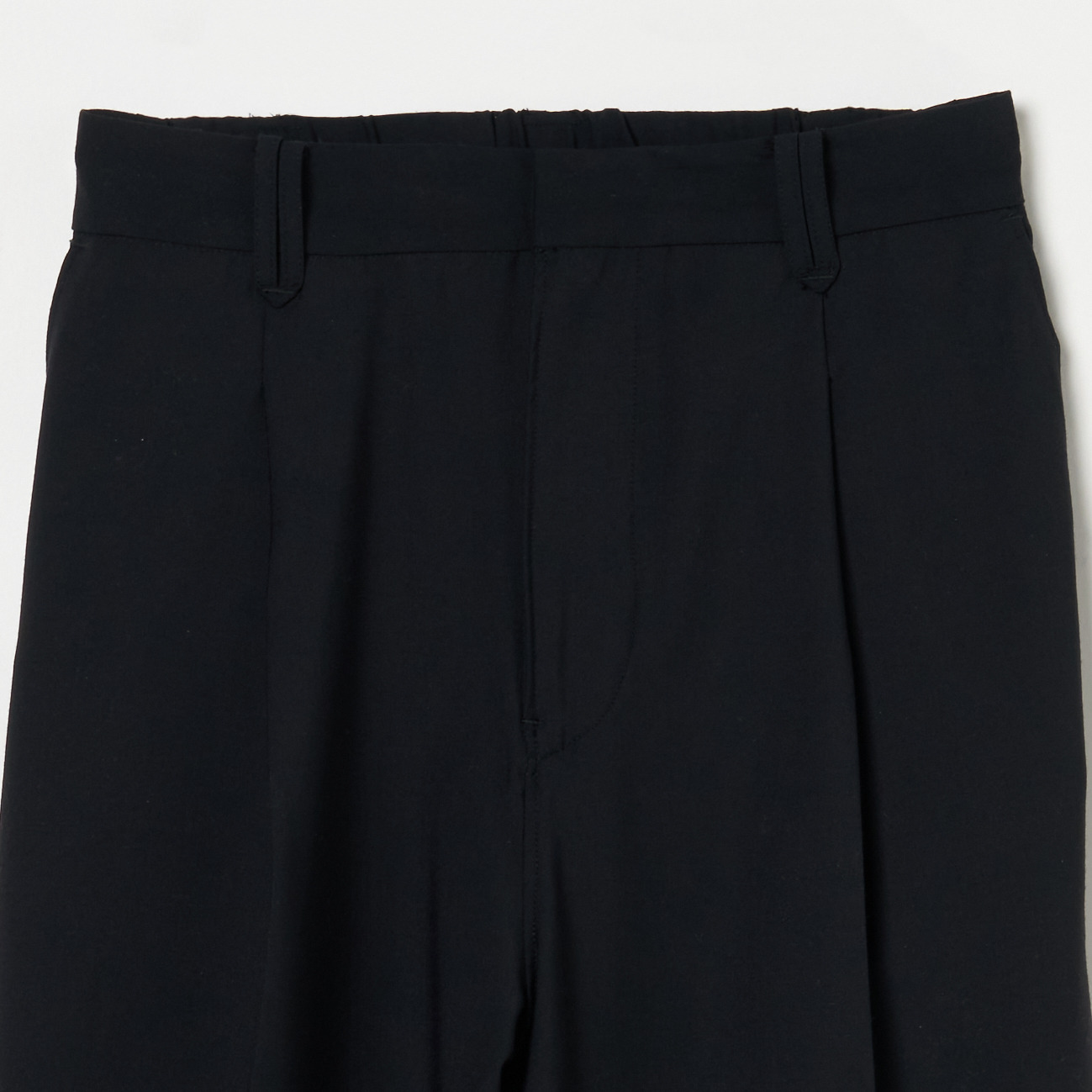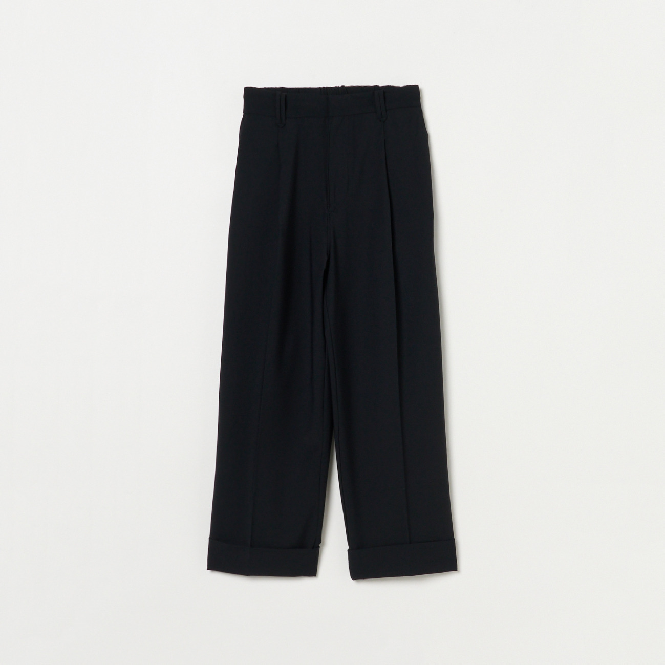 タックを入れて腰周りにゆとりを持たせた太めのストレートシルエット。