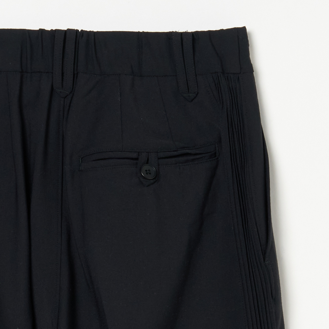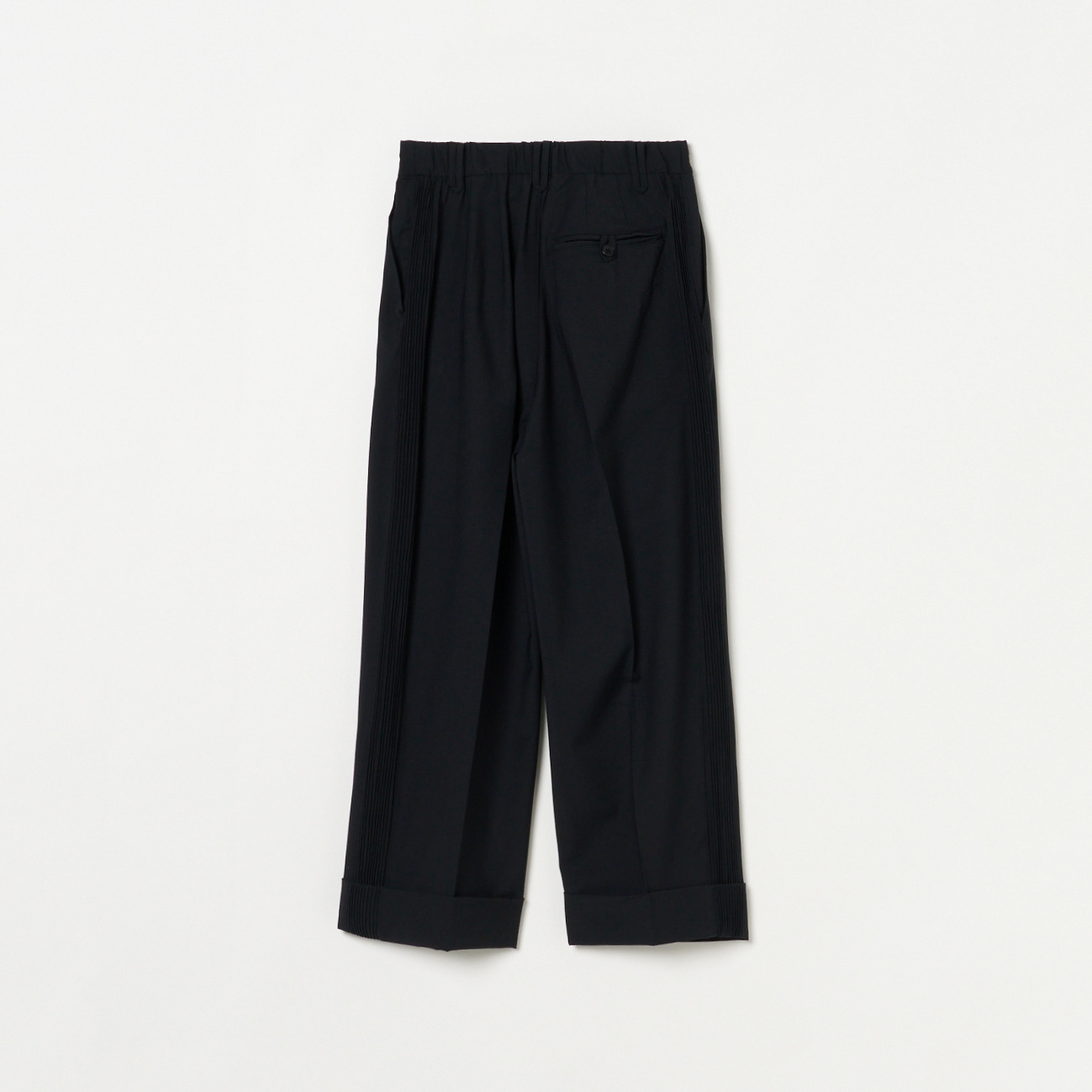 側章に職人の手で一本一本ピンタックを施した九分丈のパンツ。