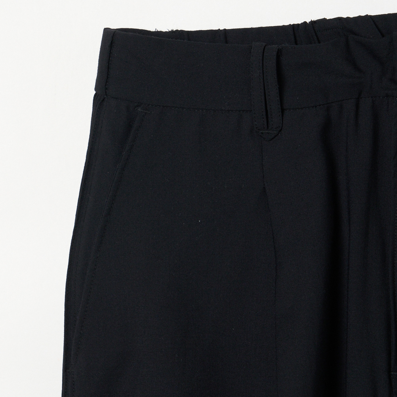 ウエスト部分はフロントをすっきりと仕立てながらバックのみゴム仕様にすることで快適さと上品さを両立。