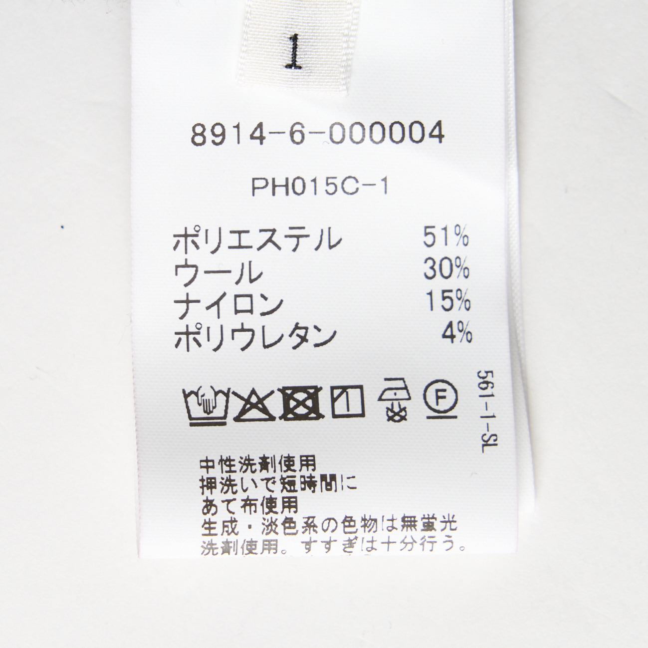 素材には梳毛のウールに、扱いやすさと美しさを両立するためリサイクルポリエステルを混紡。さらにポリウレタンを織り込むことで、適度な伸びの着心地の良さとシワになりにくく、実用性を備えながらも滑らかで上品な微光沢が特徴です。