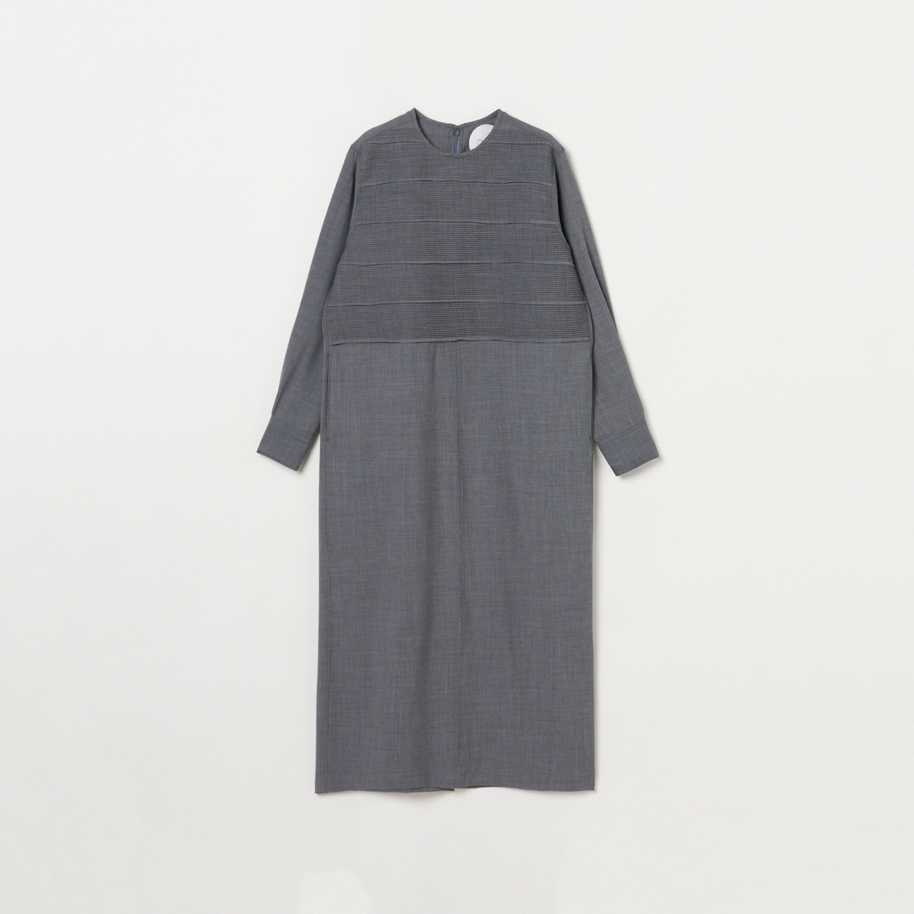 胸ヨークに職人の手で一本一本ピンタックを施したノーカラーワンピース。