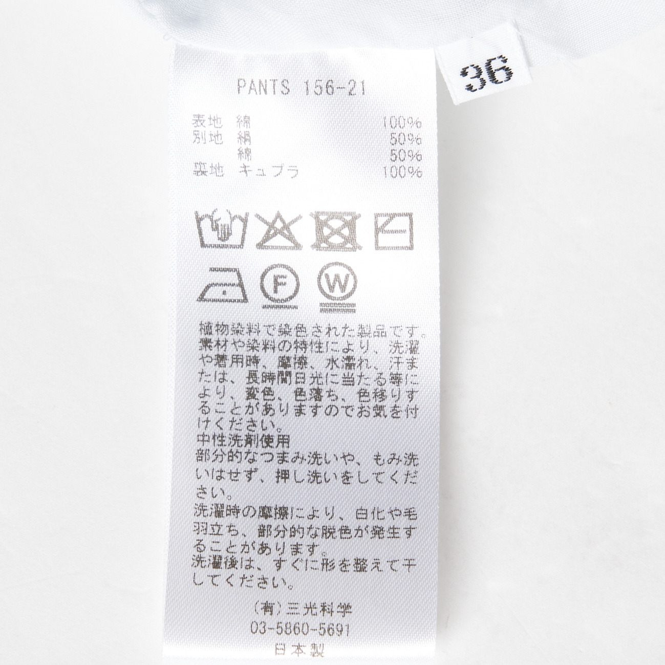 素材 : 表地:綿100% 別地:絹50%,綿50% 裏地:キュプラ100%