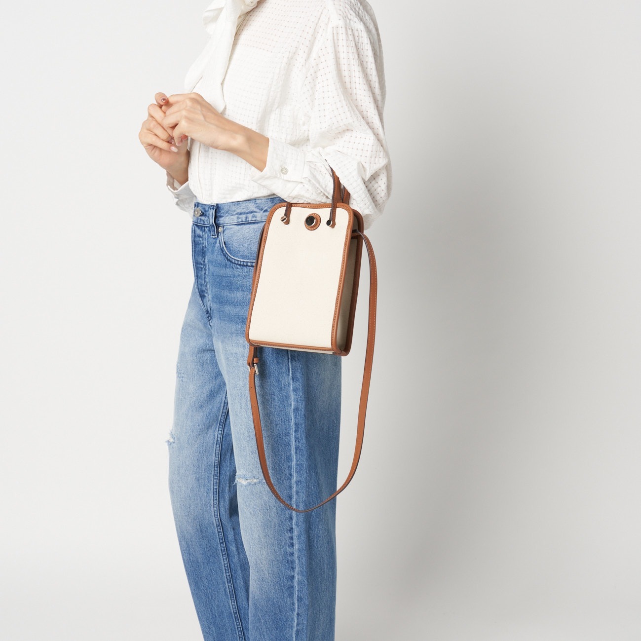 スマートフォンやミニ財布が入るサイズ感で、必要最低限の荷物をスマートに持ち運びたい方におすすめ。