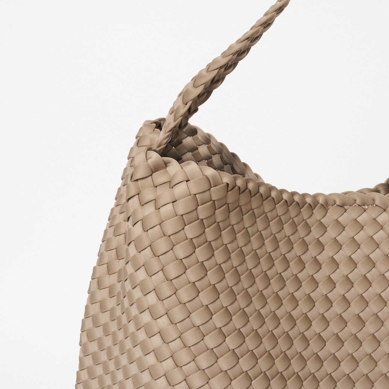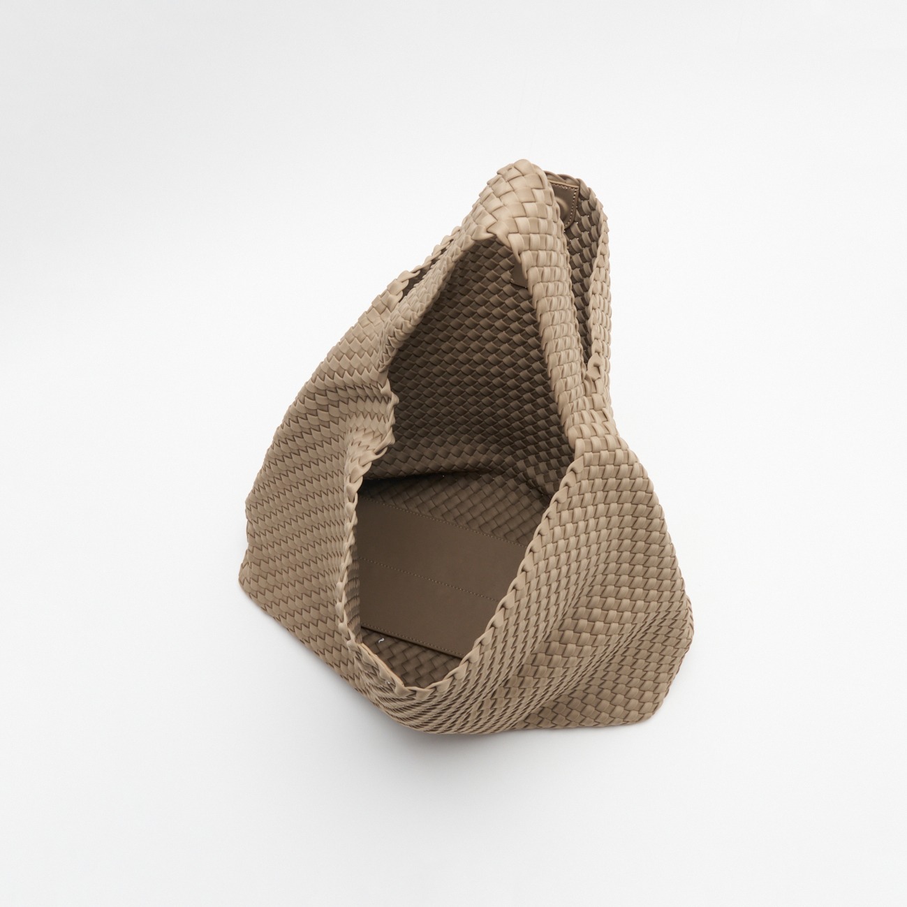 すべてのアイテムが手織りで丁寧に作られており、ウェットスーツにも使用される、耐水・耐汚性に優れた素材を採用。⾧く使える耐久性と、日常のお手入れのしや