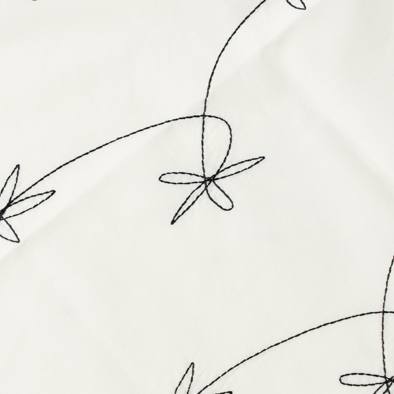 シルクの繊細な光沢感とコットンのしなやかさが融合し、バイカラーのシンプルな配色ながら、刺繍の立体感が豊かな表情と存在感をもたらします。