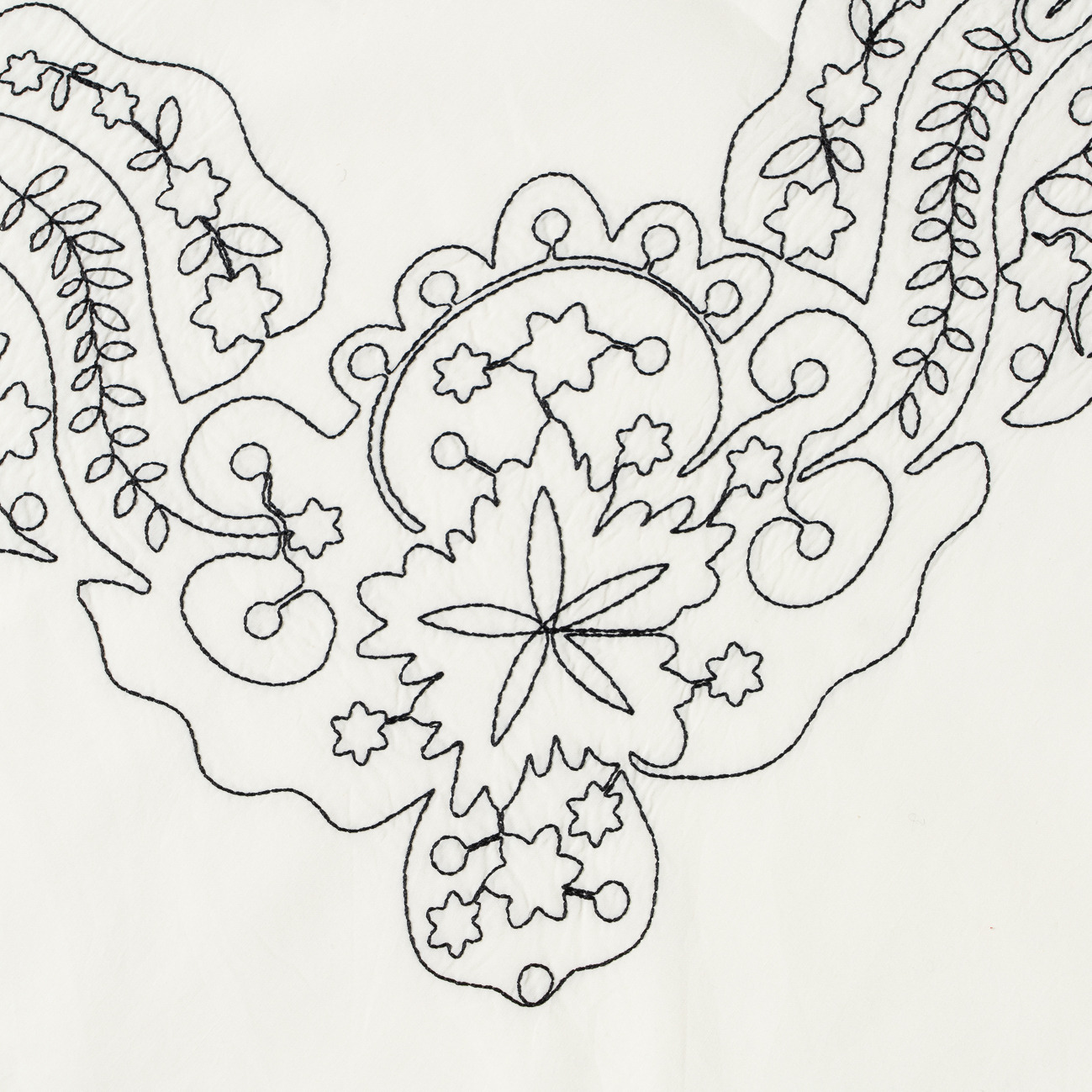 これほど大柄のステッチ刺繍は手間と時間がかかるため、職人の熟練した技術が不可欠。