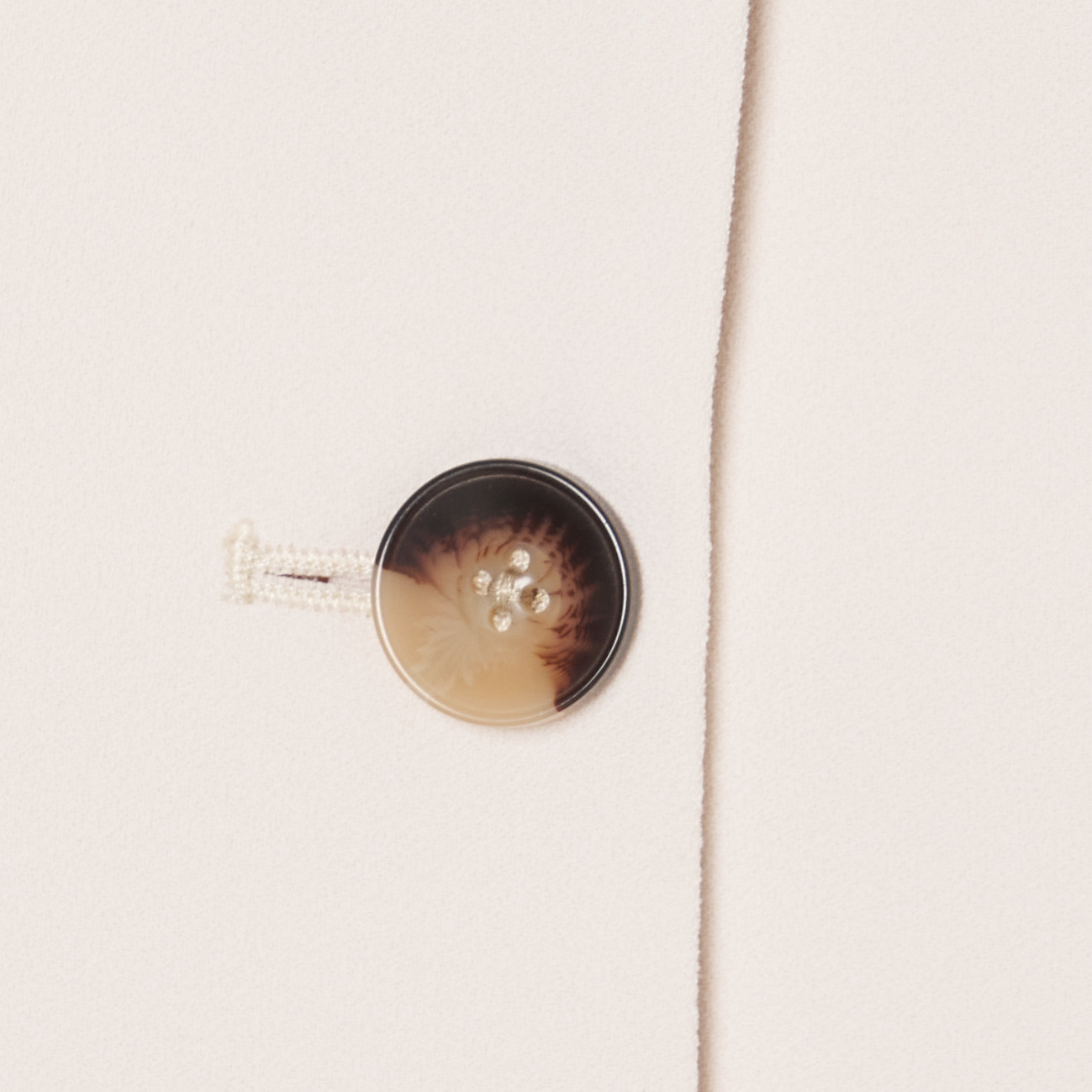 すっきりとしたラウンドネックライン、上品なフロントウェルトポケット、センターフロントの4つボタン留めが特徴です。