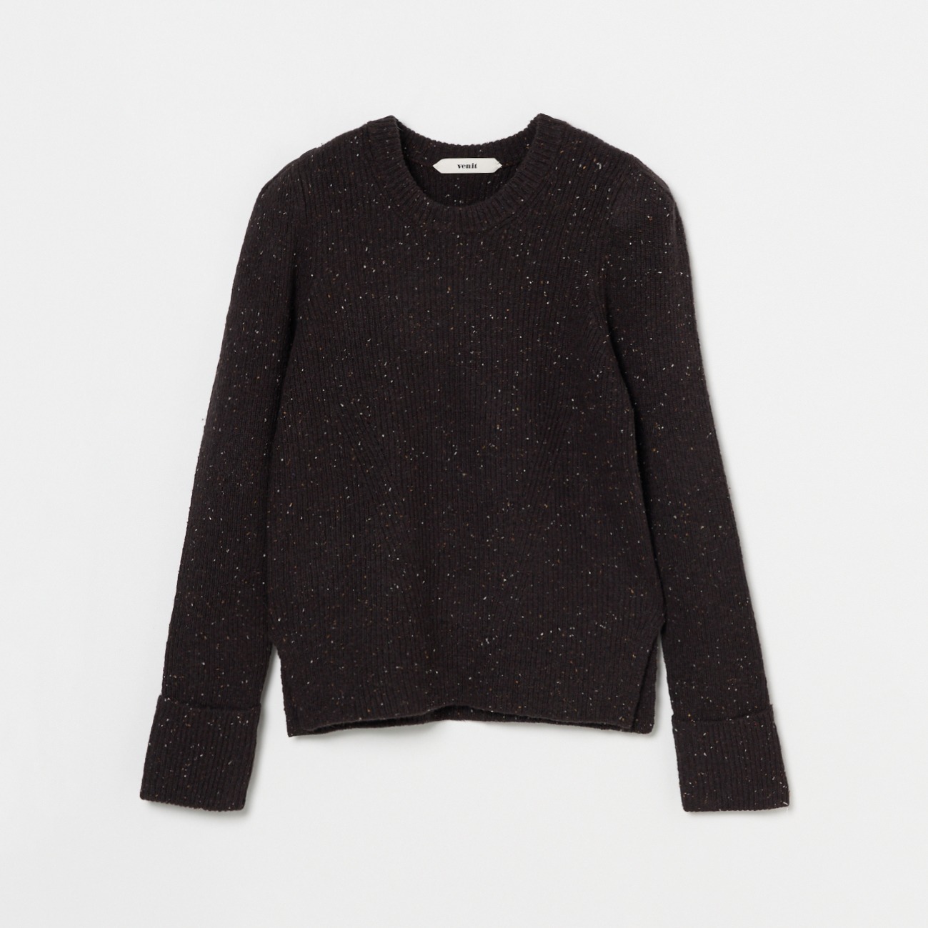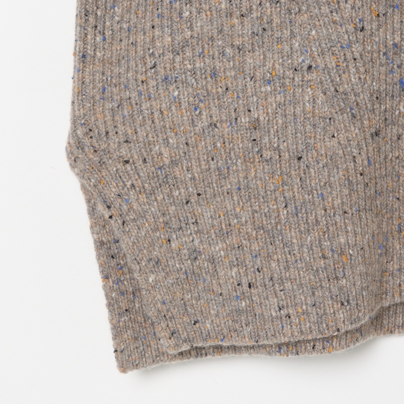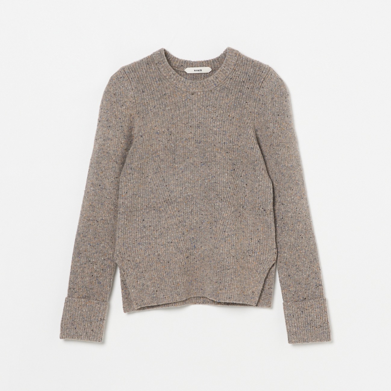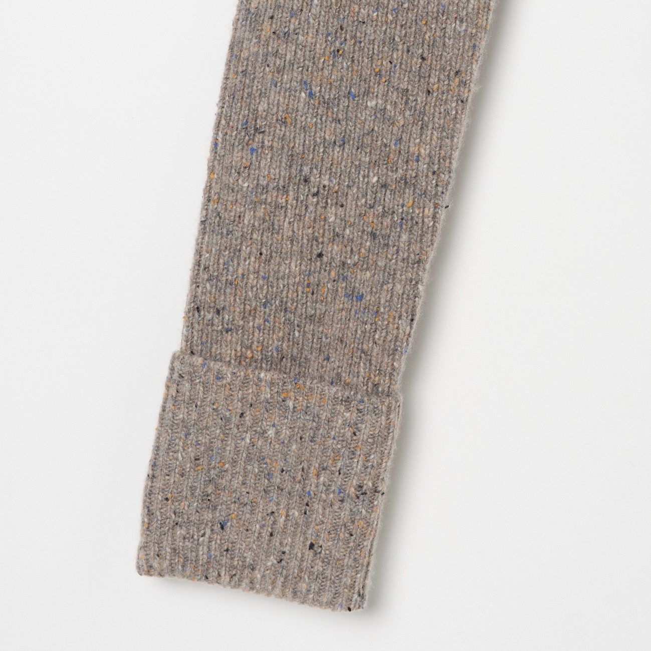 カラーネップツイードのウールナイロンの糸を使用したニット。